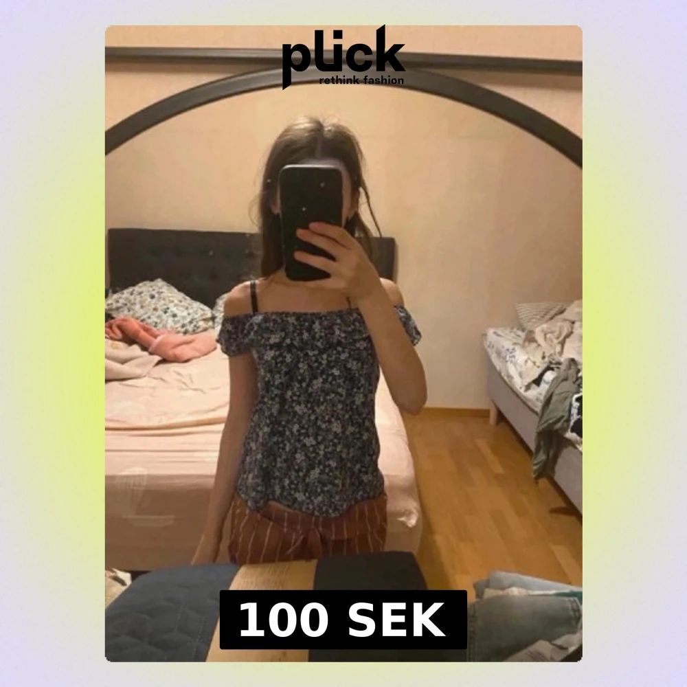 Söt offshoulder topp med blommigt mönster i blått och vitt. Toppen har korta ärmar och en luftig passform.