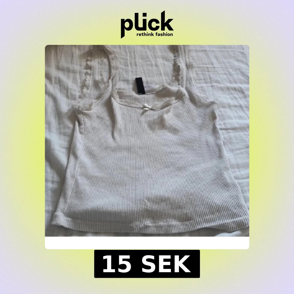 Supersöt vit ribbad linnetopp med spetskant runt ringningen och axelbanden. Toppen har en liten rosett framtill och är croppad i modellen. Perfekt för varma dagar eller som lager-på-lager-plagg. Materialet är mjukt och stretchigt för en bekväm passform.