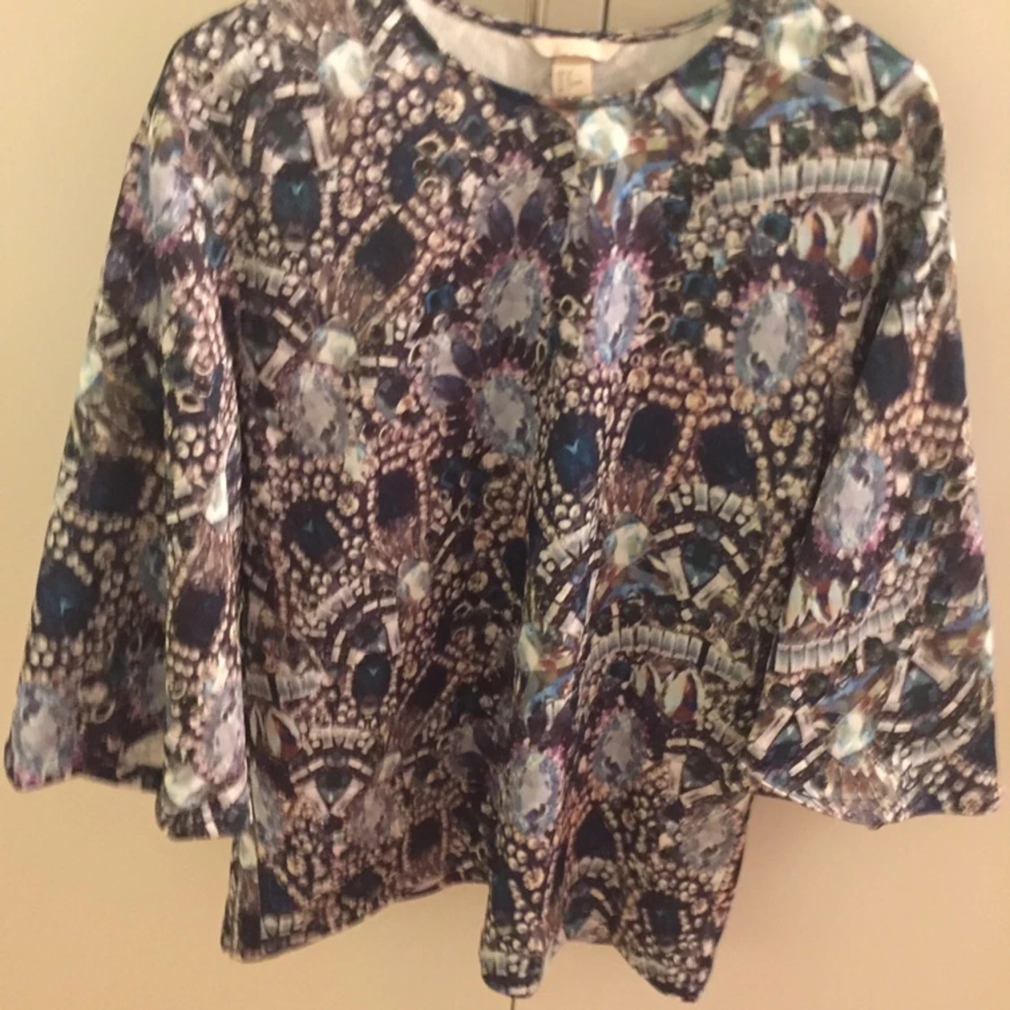 Superfin blingad tröja från h&m-trend. Använd en gång. Utsvängd ärm. Lite längre i modellen. Storlek 38. Eller M. Frakt blir 28kr. Har swish.