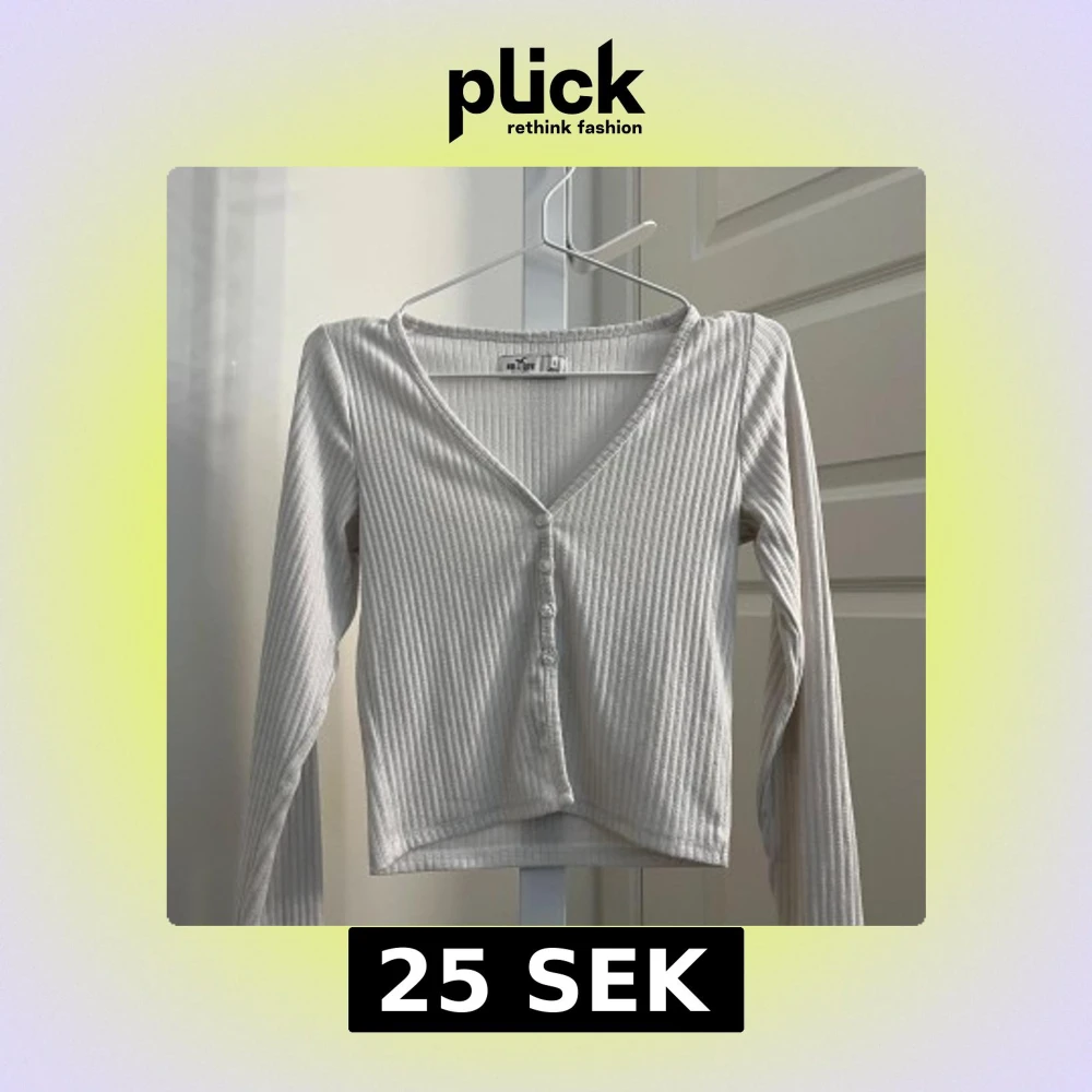 Säljer en vit ribbad långärmad topp från Hollister med v-ringning och knappar framtill. Den har en tight passform och perfekt att styla till olika outfits🌺