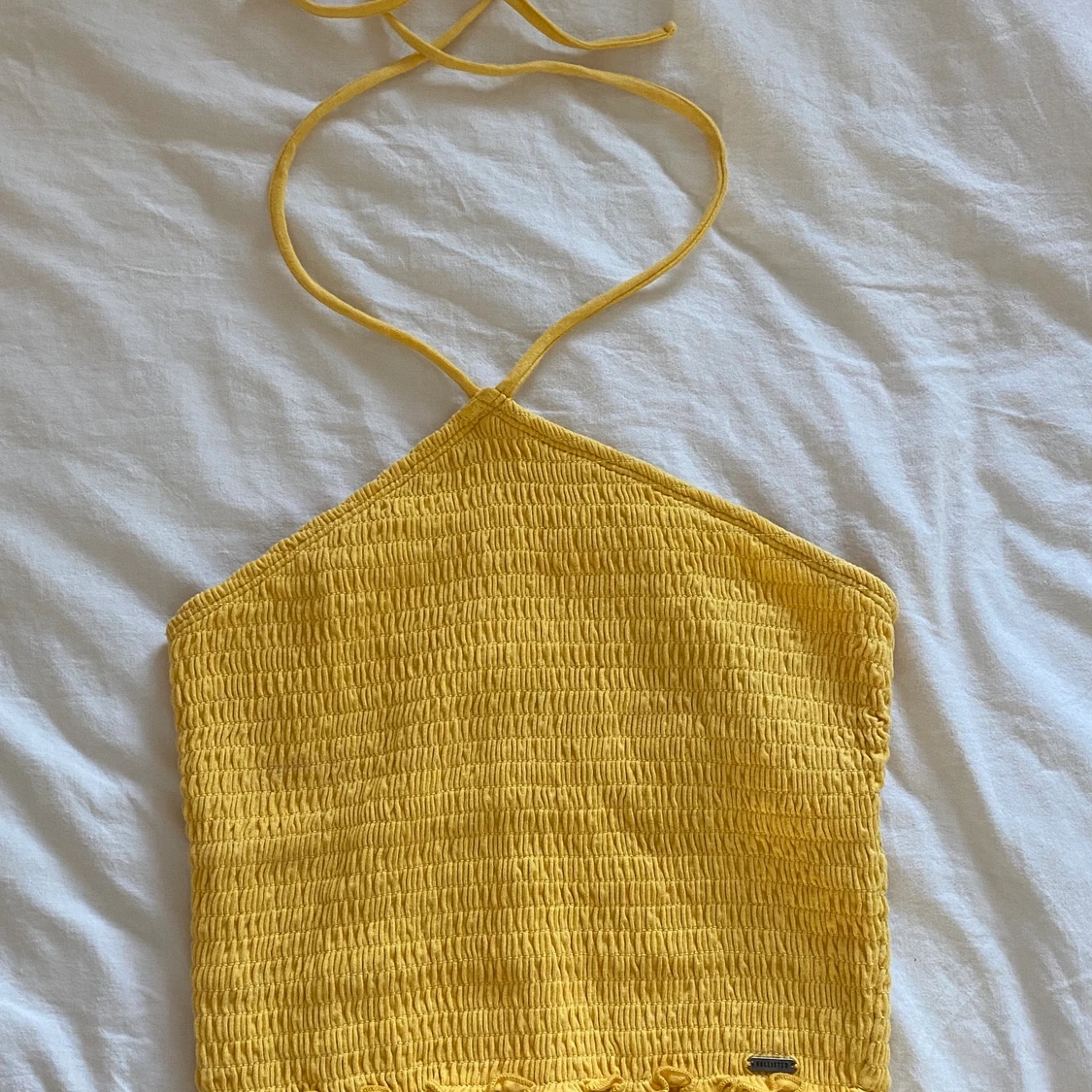 Hej! Säljer en superfin, trendig halterneck topp från hollister, köpt för ca 2 år sedan och knappt använd och behöver ett nytt hem! Toppen är i storlek xs men har sytts med elastiskt band och är därför väldigt stretchig. Sitter bra på mig som