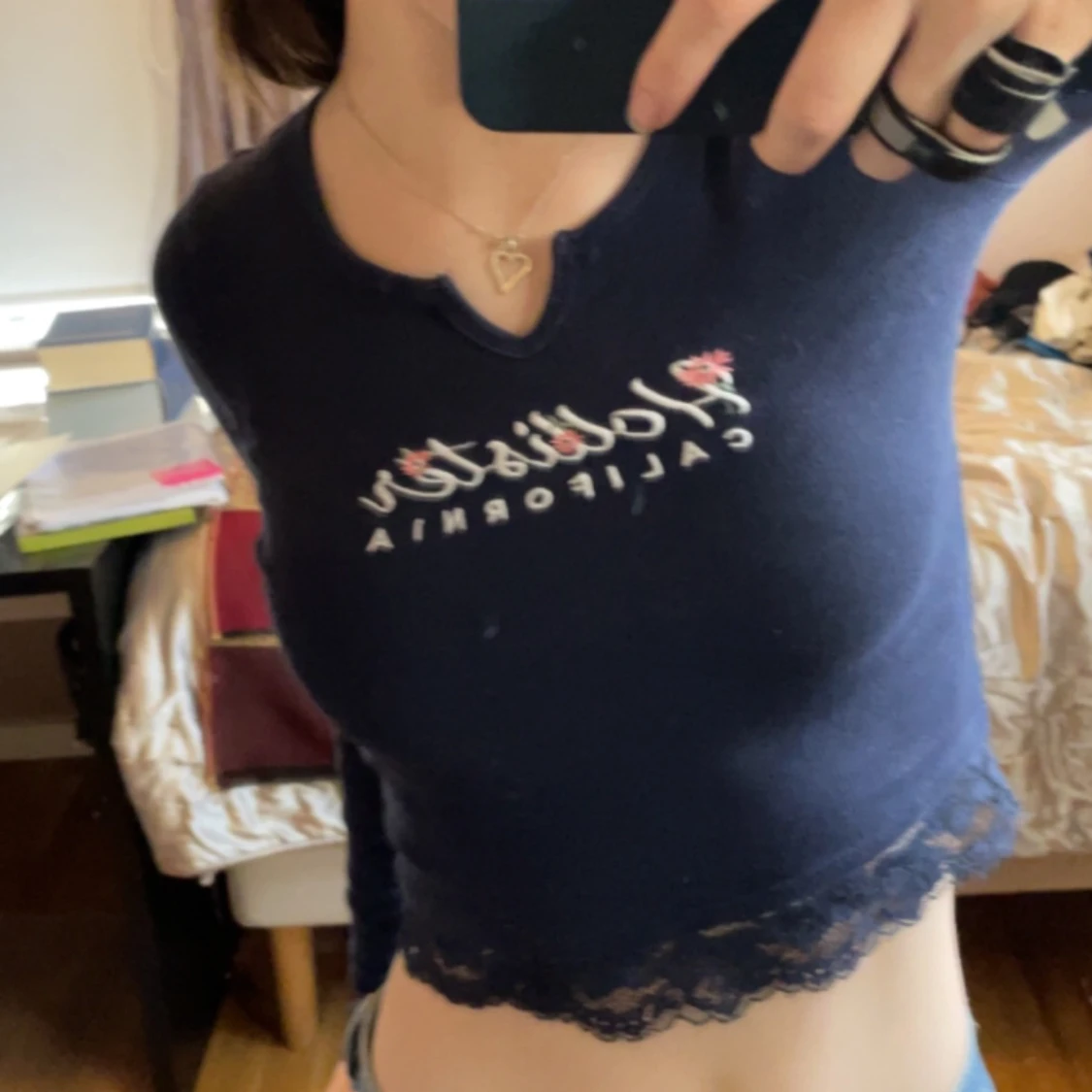 Super fin topp från hollister, går inte att få tag på längre. En liten slits vid bysten samt spets längst ner. Inga deffekter. Så smickrande!