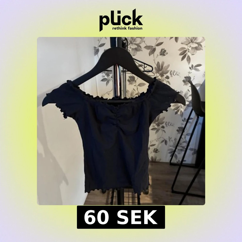 Svart ribbad topp från Hollister med söt rynkdetalj framtill och volangkant vid halsringning, ärmslut och nederkant. Modellen är figurnära och har korta ärmar med offshoulder-stil. Perfekt för dig som gillar en enkel men ändå trendig look.