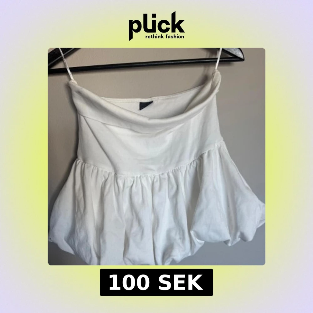 Säljer en vit tubtopp med volangig, från Gina Tricot, sitter som en M/S