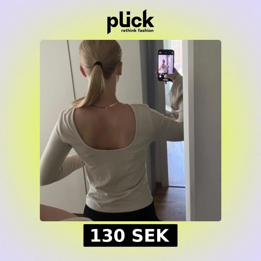 Snygg beige långärmad topp från NA-KD med rundad hals och djup, öppen rygg. Ärmarna är utsvängda.