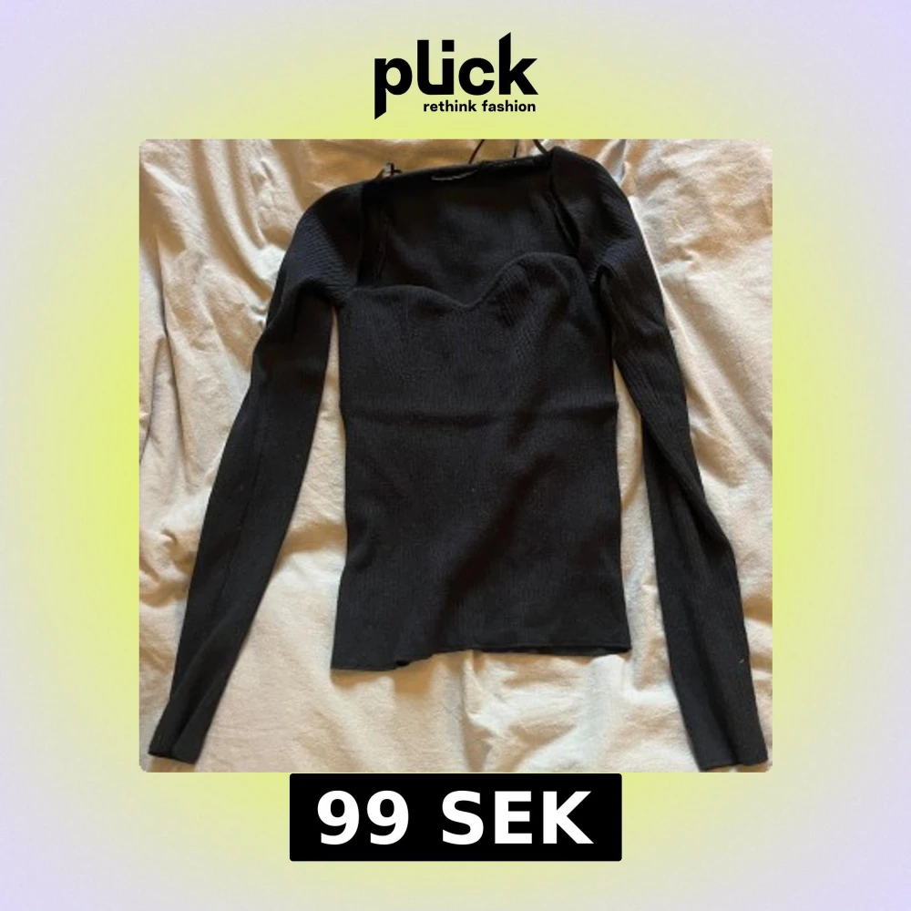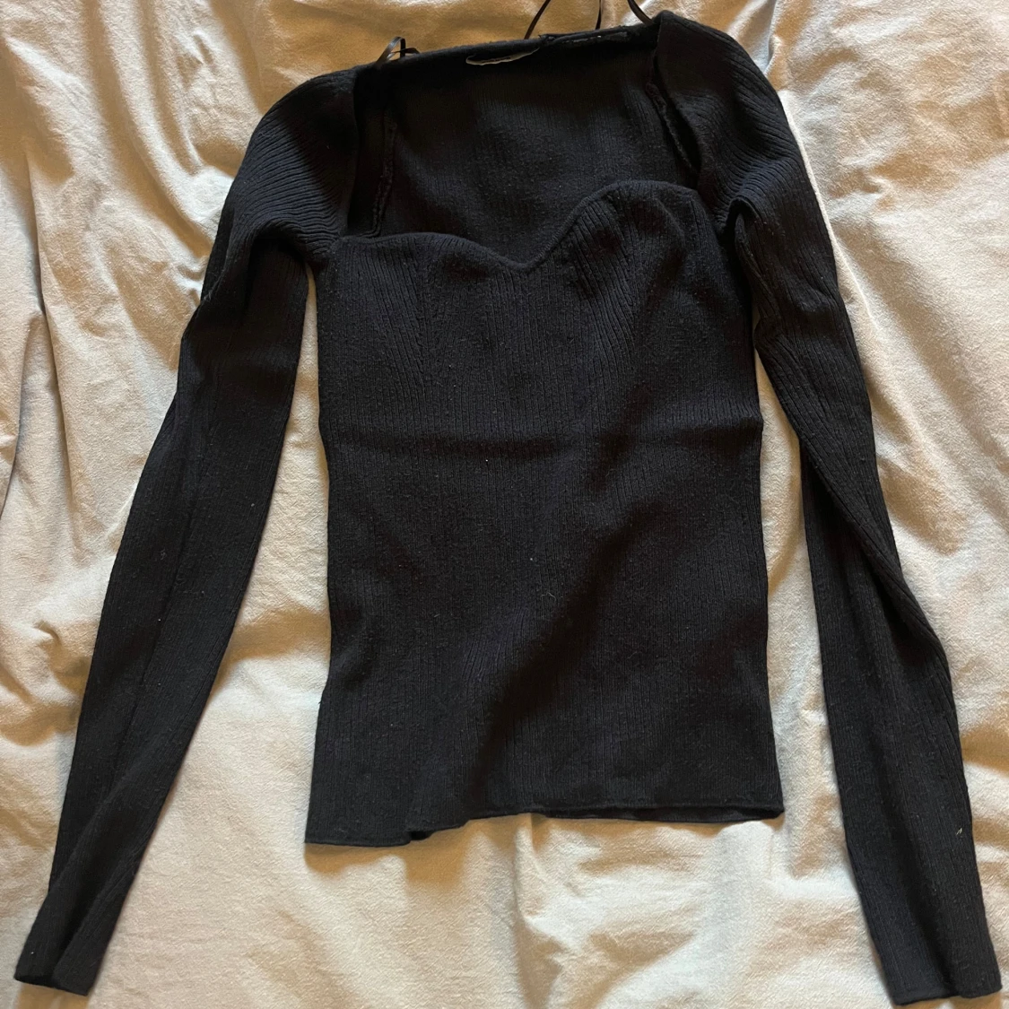 Snygg svart ribbad topp med lång ärm och en unik sweetheart-urringning. Toppen är figurnära och har en stilren look som passar till många outfits. Perfekt för dig som gillar minimalistisk stil med en twist.
