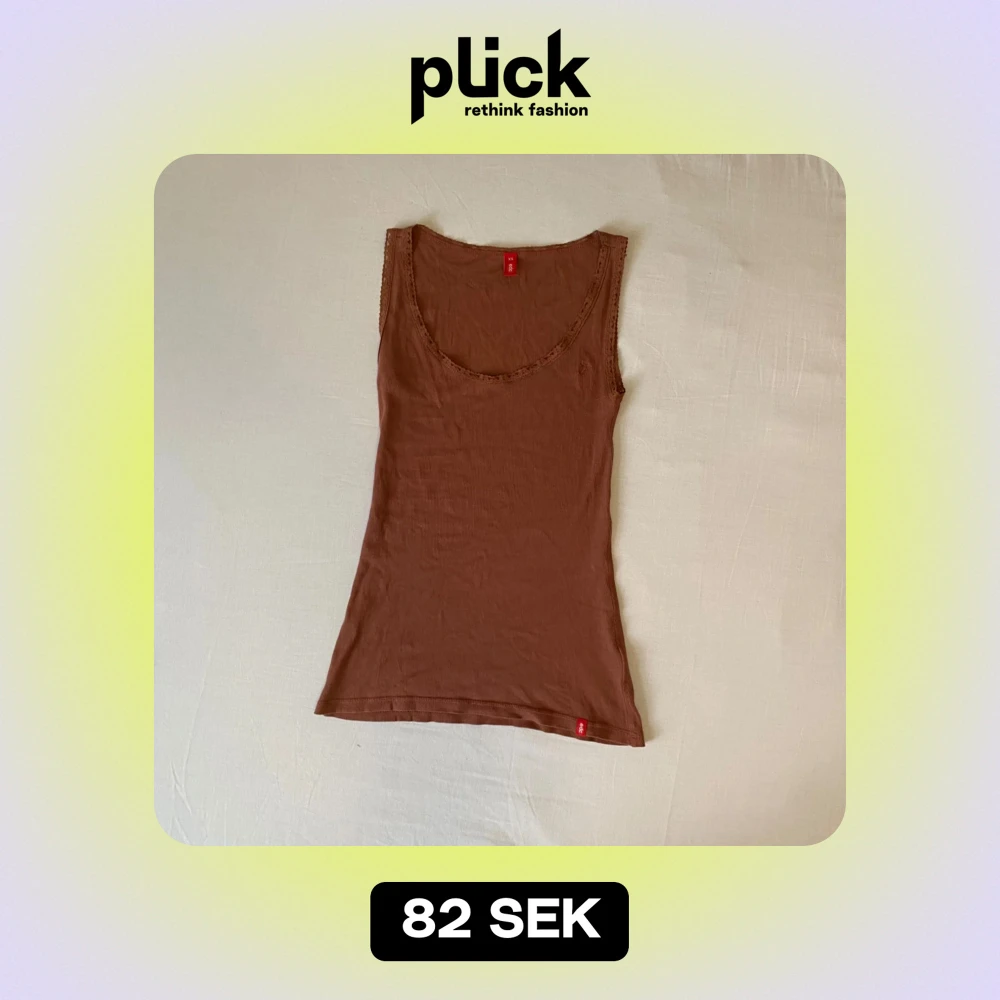 Brunt ribbat linne med spetts detaljer från EDC by Esprit. Det är urringat och är i storlek XS och sitter tajt och är lite stretchigt. Bra skick och andvänt fåtal gånger.