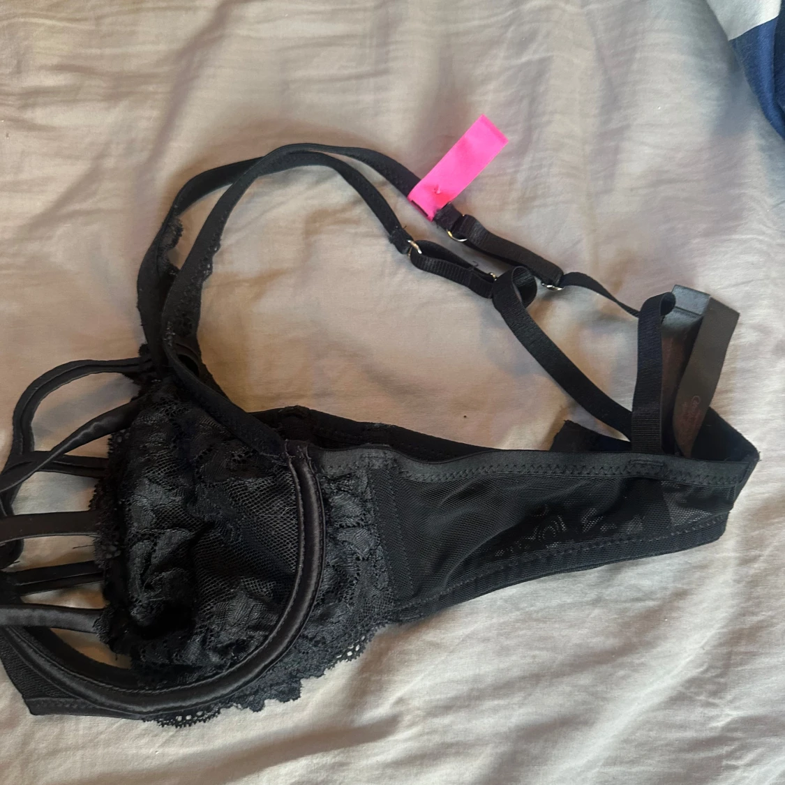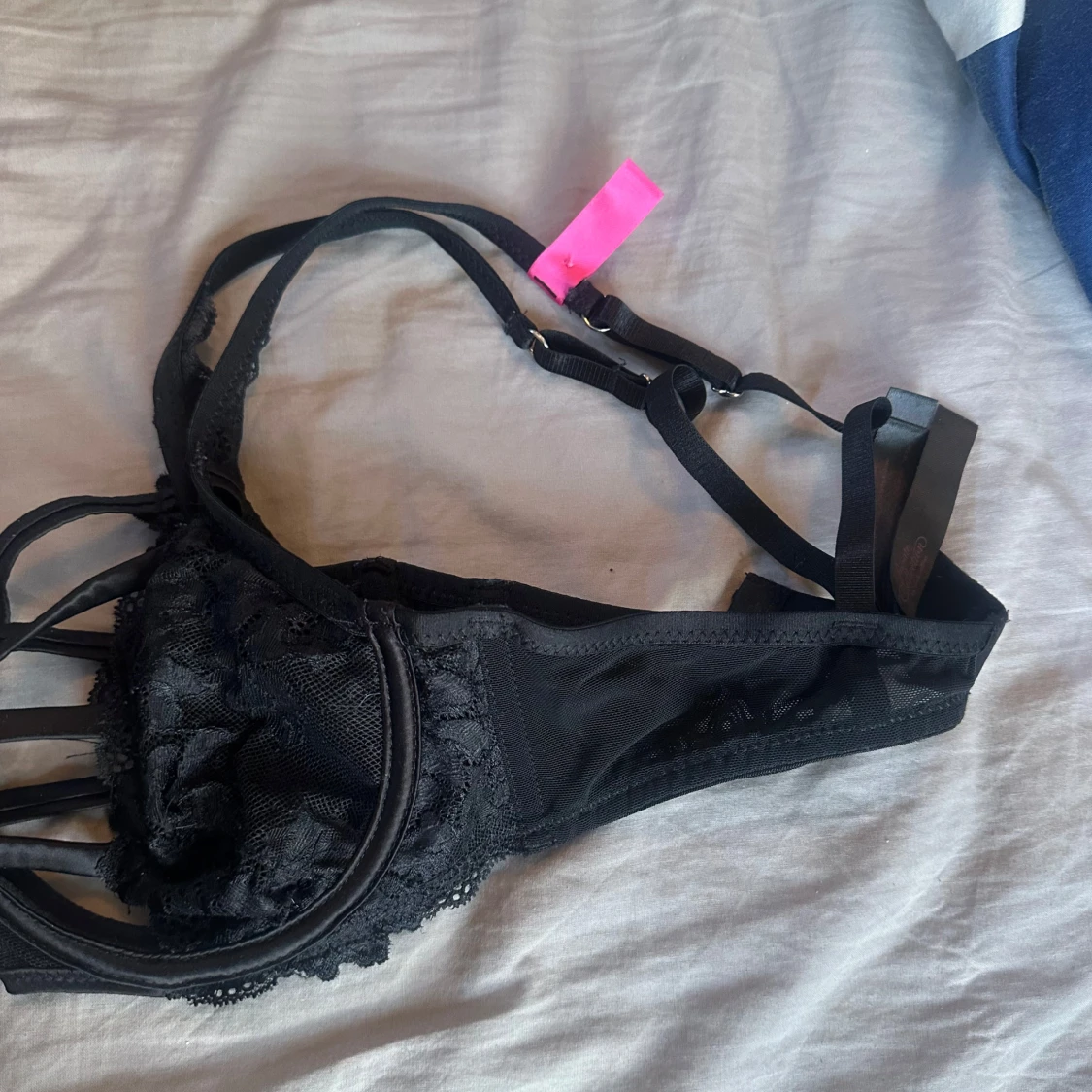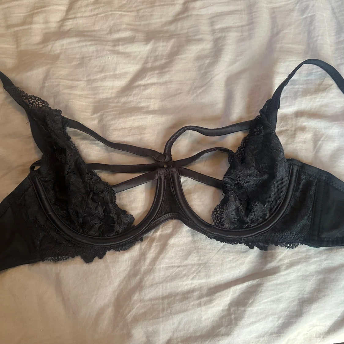 Säljer en svart korsett-topp med snygga spetsdetaljer. Kommer från hunkemöller men aldrig använd pga för fel storlek. Förlåt för dåliga bilder men svår att fota🩷🩷Inget fast pris