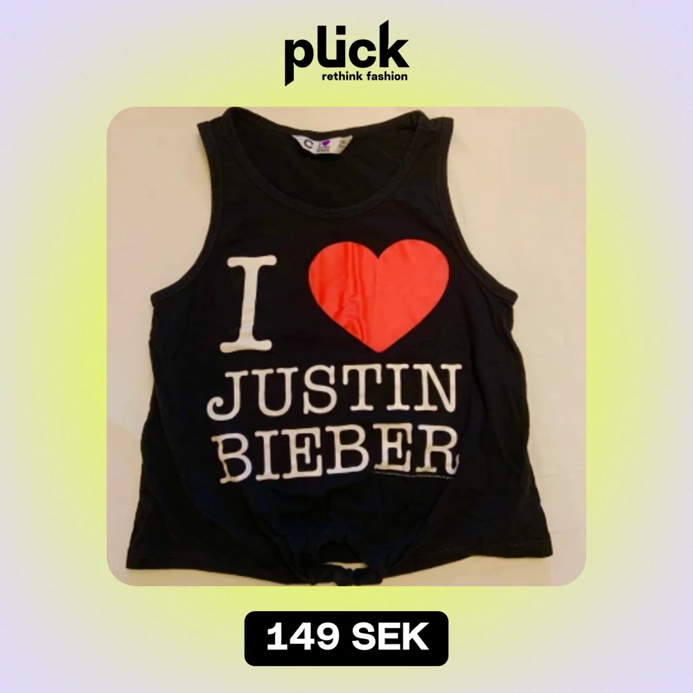 Fett söt svart topp med trycket âI love JBâ pĂ„! Har aldrig anvĂ€nt dĂ„ jag inte Ă€r ett fan haha, sĂ„ den Ă€r som ny! VĂ€ldigt Y2K-y2kđ