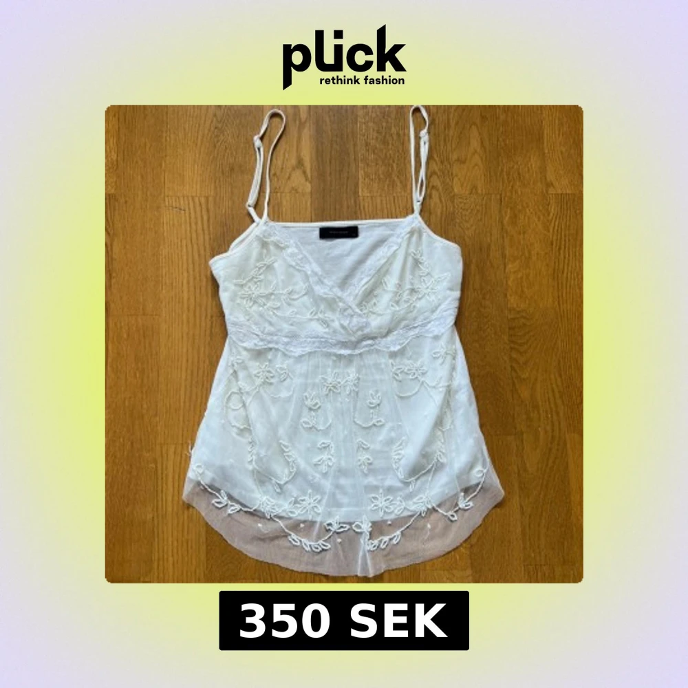 Supersöt vit linnetopp från Vero Moda med tunna axelband och v-ringning med pärlor. Toppen har broderade blommor och spetsdetaljer framtill samt ett lager av transparent mesh längst ner. Perfekt för en fräsch och romantisk look.
