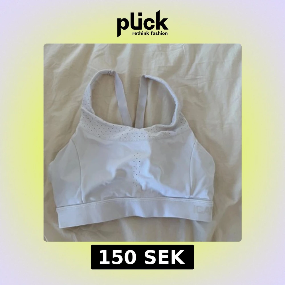 Säljer en vit sporttopp från ICANIWILL med perforerade detaljer för extra ventilation. Toppen har en brottarrygg och bred resår under bysten för bra stöd. Perfekt för träning och aktiva dagar.
