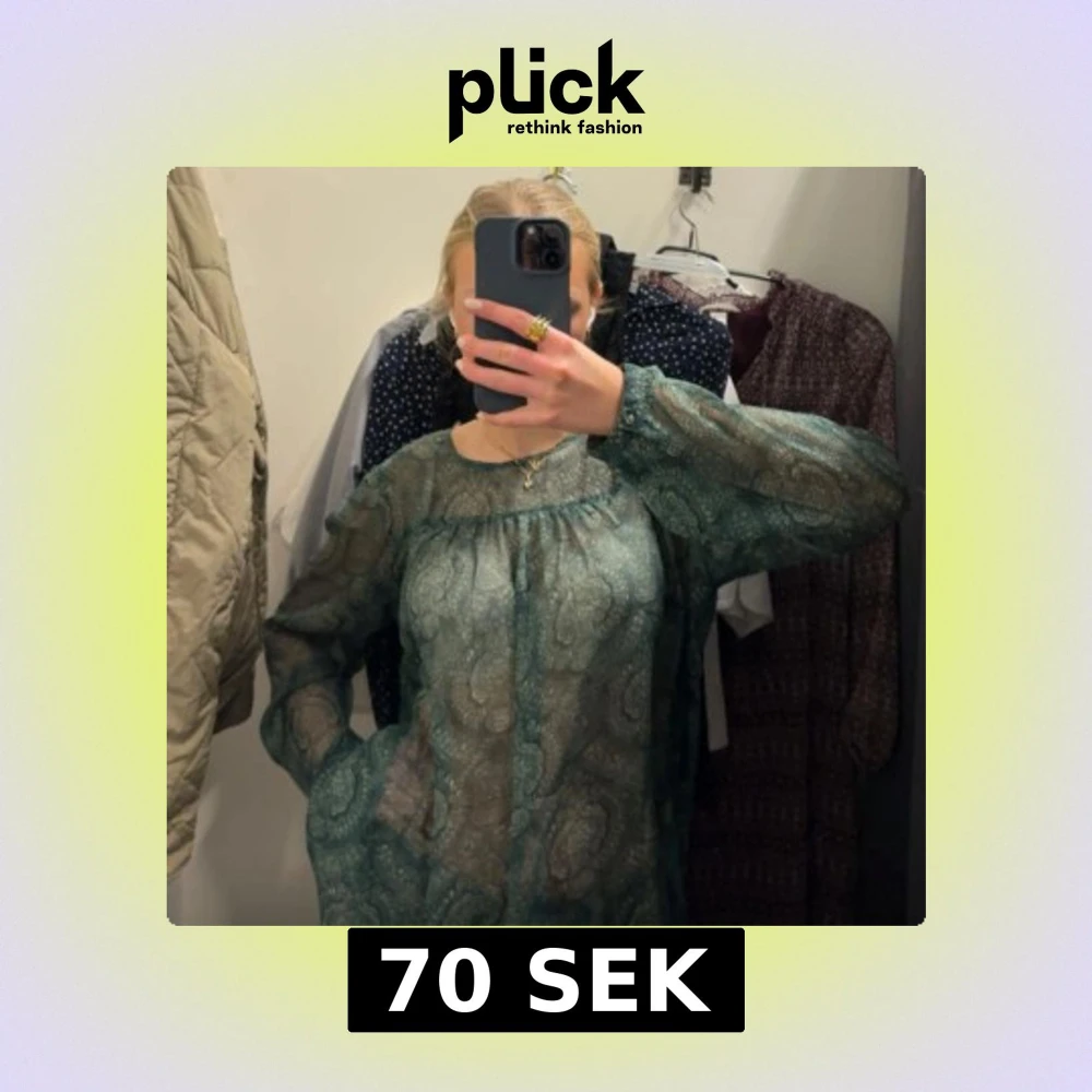 Säljer en elegant grön blus med ett subtilt mönster. Blusen har långa ärmar och en luftig passform, perfekt för en stilren look. Passar bra till både jeans och kjol.