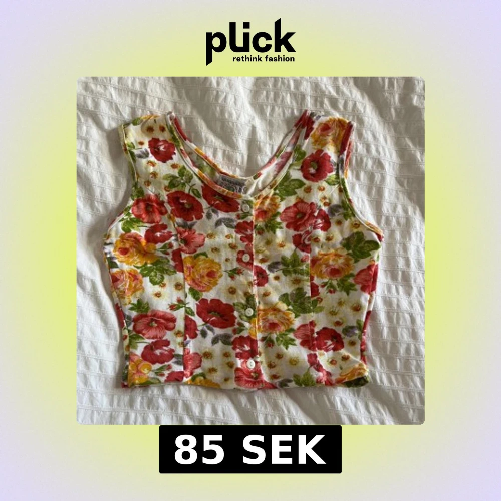 Blommig ärmlös linnetopp med knappar