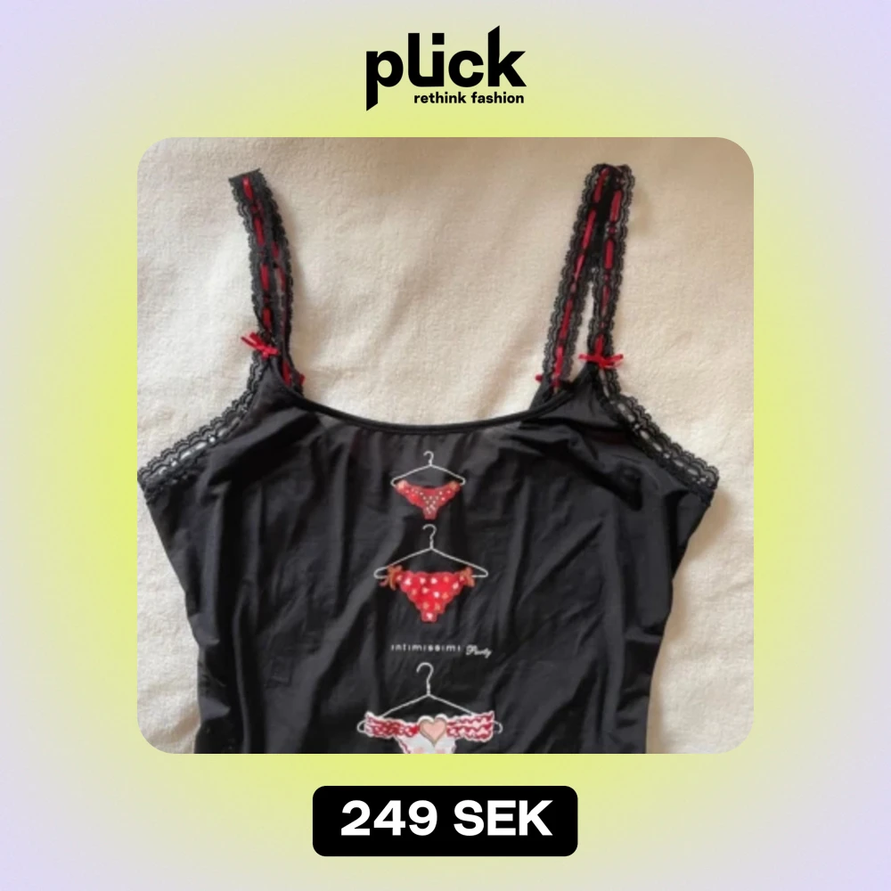 jättefint linne från intimissimi med detaljer i rött band, rosetter och spets med tryck. passar som nattlinne och vanlig topp <3 mycket gott skick! cute, underwear, linne, topp, pyjamaq, underkläder, spets, romantisk, coquette, y2k, trend, fall,