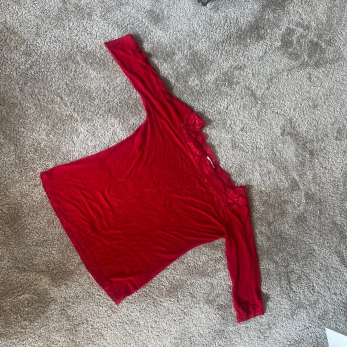 Röd långärmad topp med spetsdetaljer