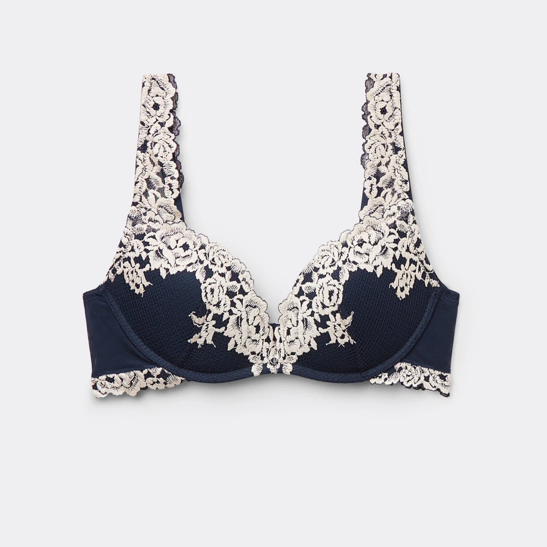 Intimissimis super populära bh, gioia. Mörkblå med vit spets. Storlek 75B. Endast testad, säljer pågrund av att den var för liten.
