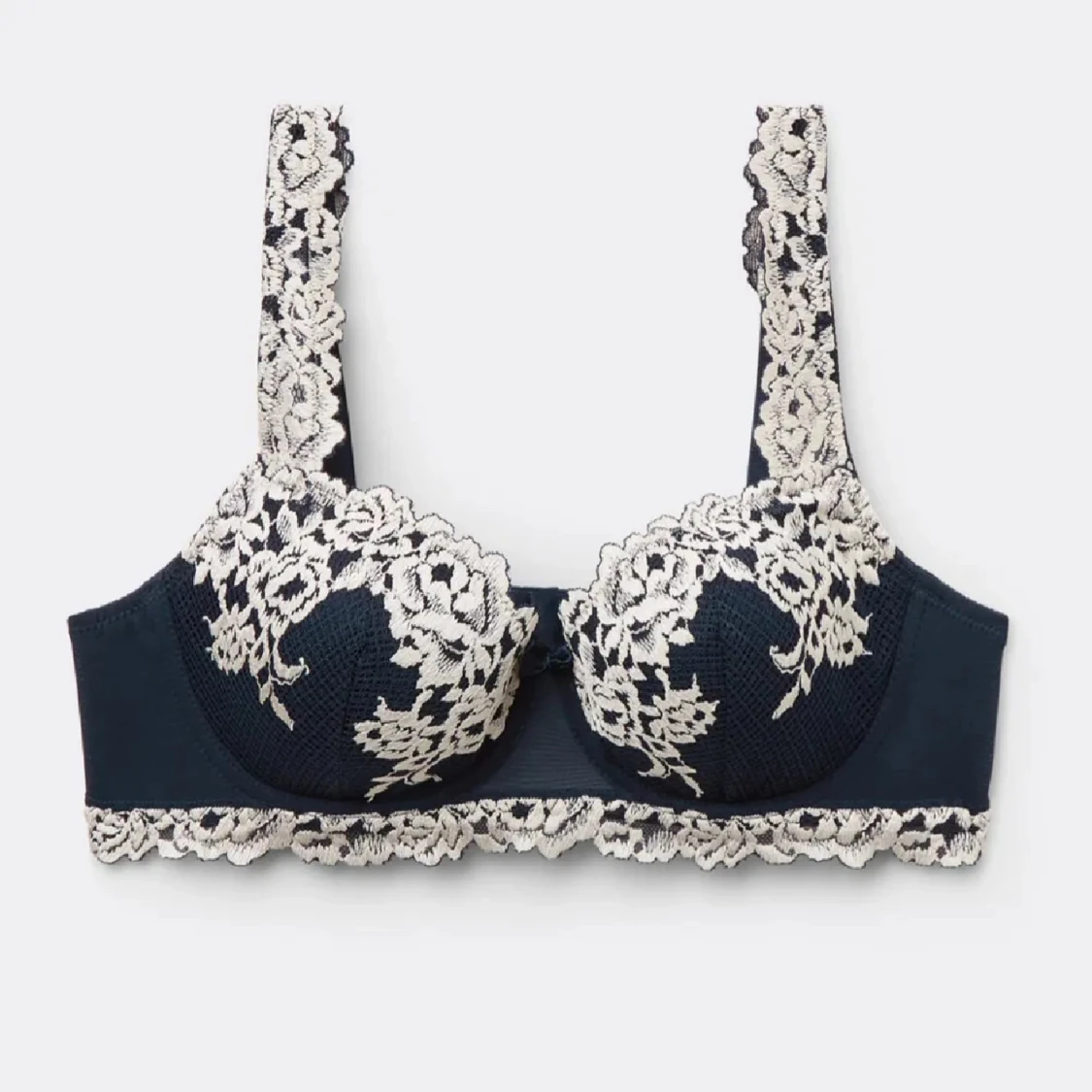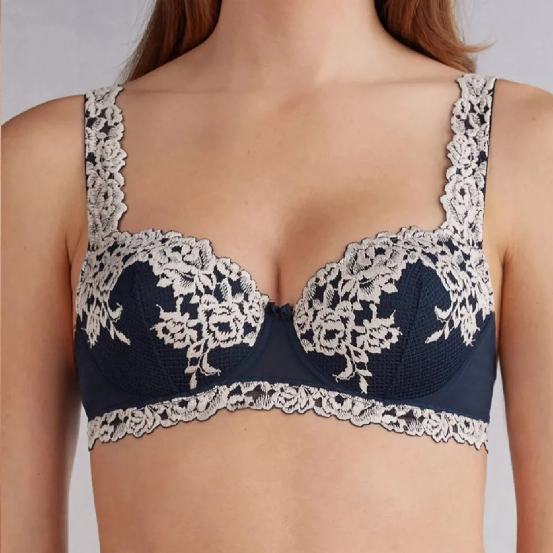 Elegant mörkblå bh med vacker vit spetsdetaljering ifrån Intimissimi. Använd några gånger men i mycket fint skick. Storlek 80C