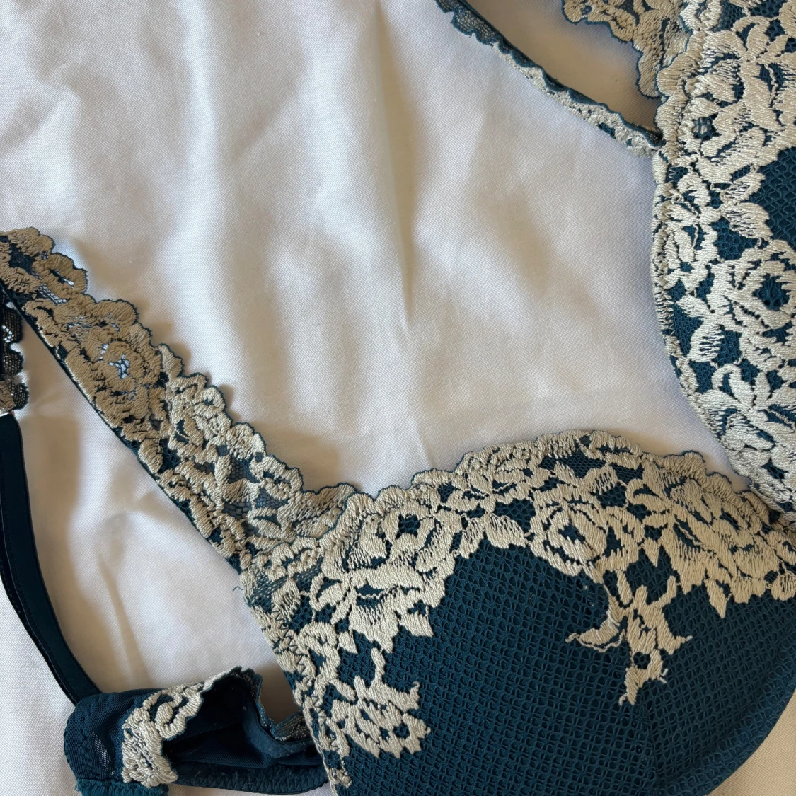 Säljer min intimissimi bh i storlek 75B. Jag köpte bh:n för några månader sedan men den har ej kommit till användning då den inte passar. Hör av er om ni är intresserade! 🩷obs!! Bh:n är tvättad med blått då det är därför de vita detaljerna är lite mörka och så är ljuset också relaterat till detta.