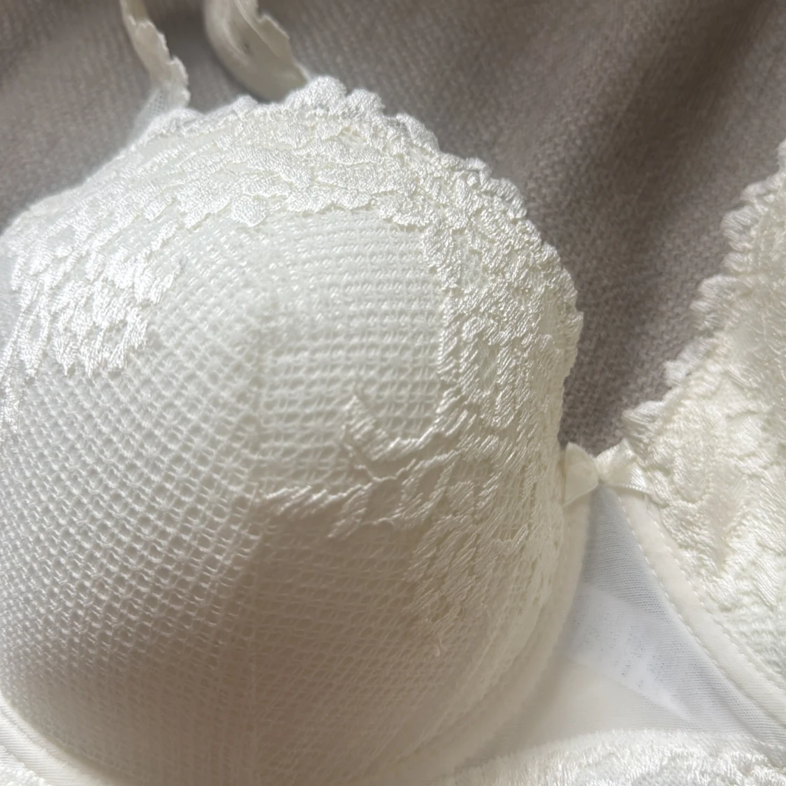 Superfin vit bh med vadderade kupor och spetsdetaljer längs kanterna och axelbanden. Bhn är helt oanvänd.