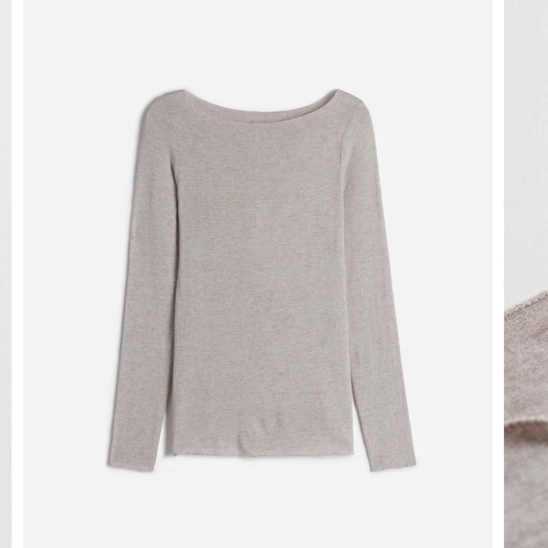 Slimmad och mjuk långärmad tröja i ljusbeige ton med rundad hals. Materialet känns lätt och stretchigt, (kashmir) Helt oanvänd, endast testad, köpt för ca 500kr