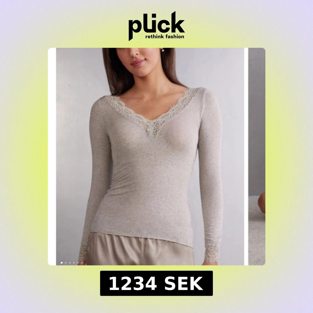 Säljer en beige långärmad topp med v-ringning och fina spetsdetaljer från intimissimi. Som jag nästan aldrig använt,kom med pris förslag💞