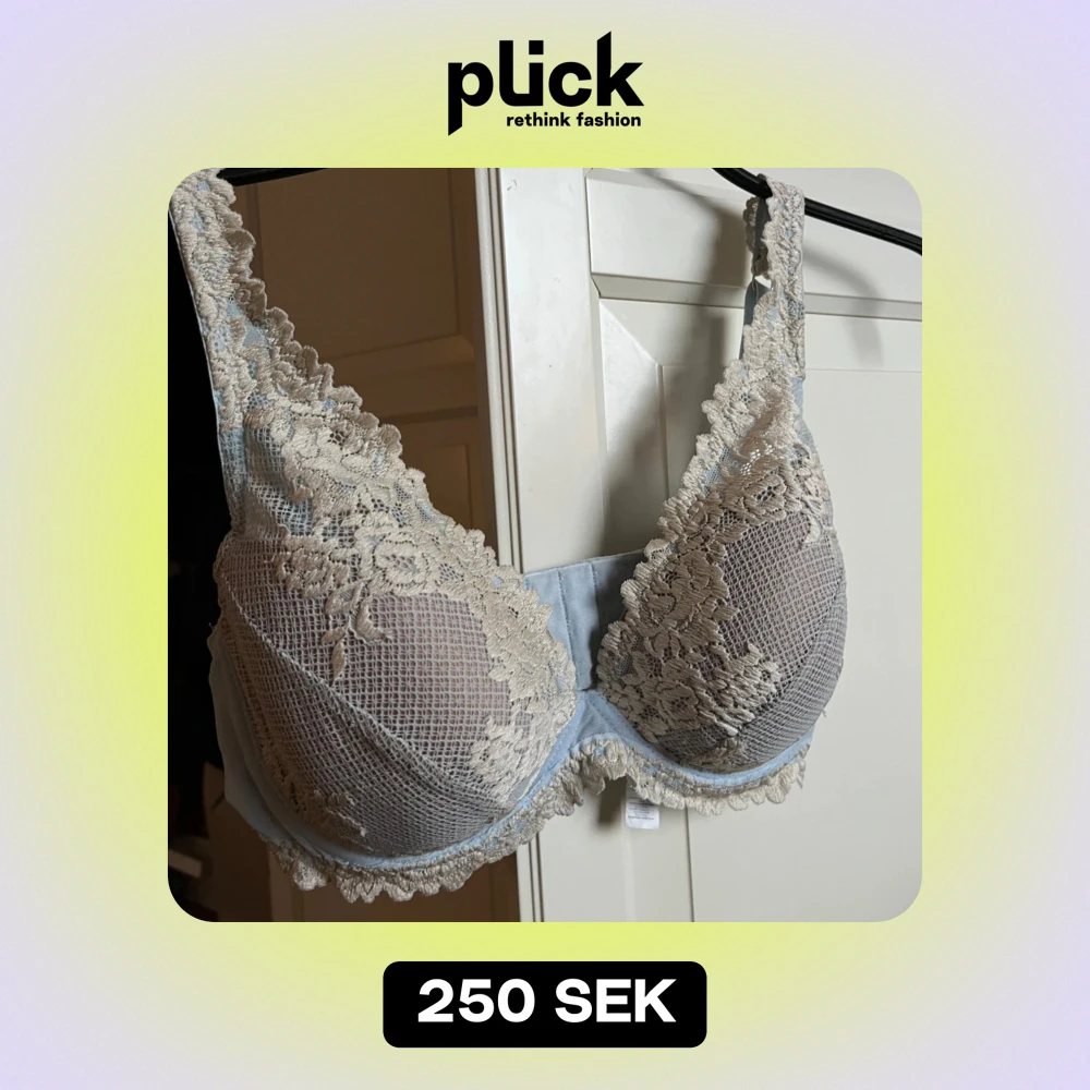 Säljer en superfin ljusblå bh med vacker spets. Den har justerbara axelband och en klassisk hakknäppning bak. Knappt använd🫶🏼