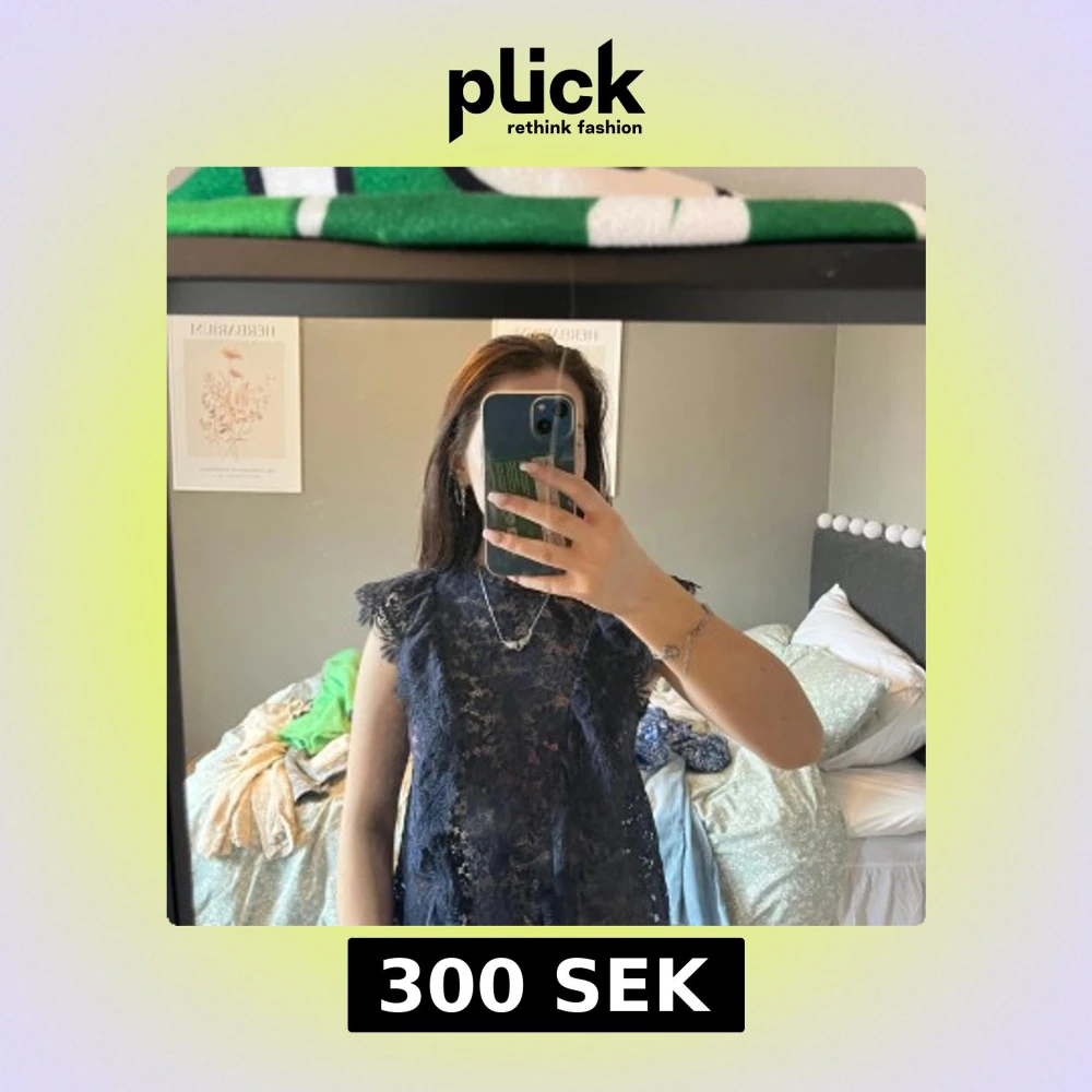 Säljer en elegant mörkblå spetstopp med korta ärmar och vackra detaljer. Perfekt för en festlig kväll eller speciellt tillfälle. Toppen har en smickrande passform och en fin struktur i spetsen.