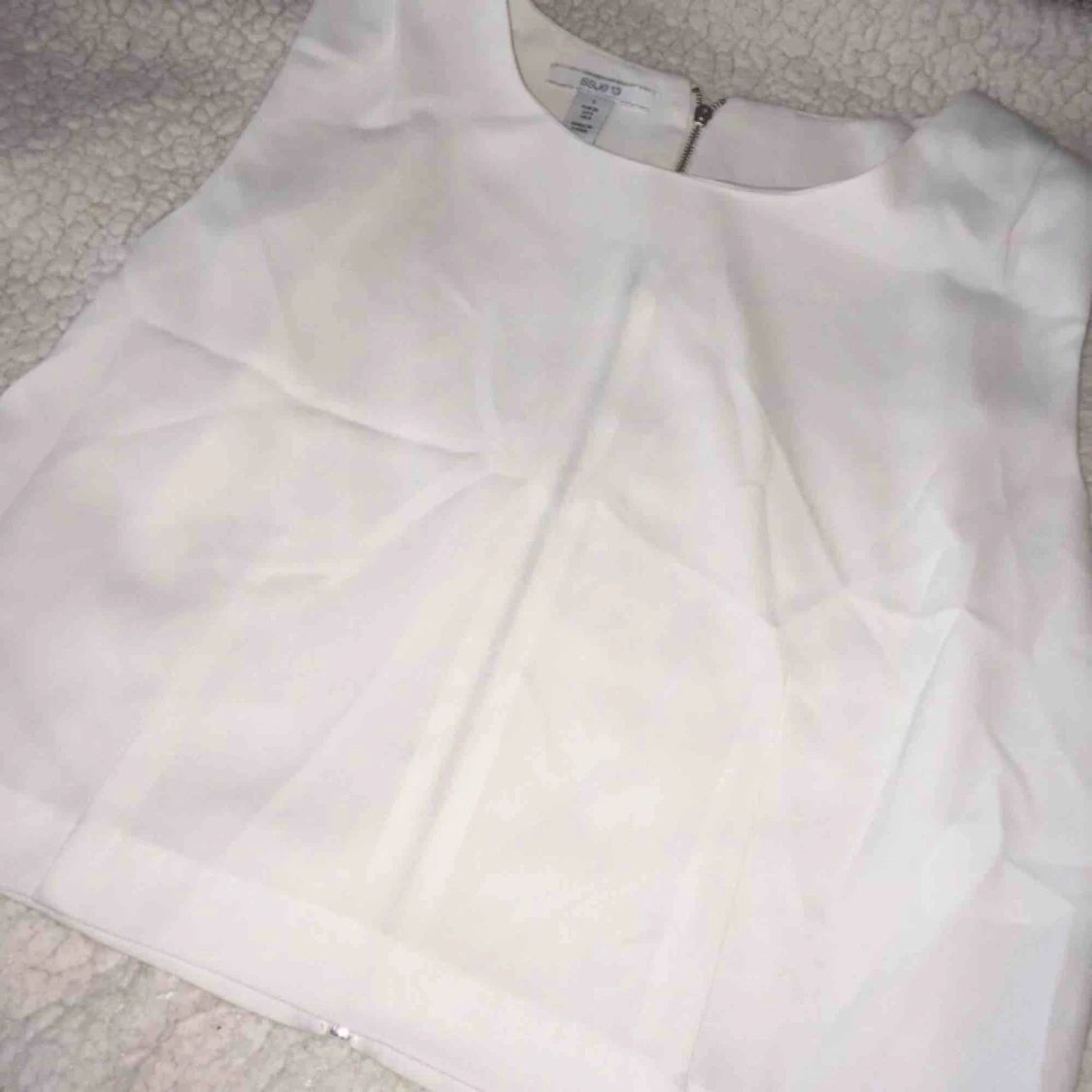 En vit topp i storlek SMALL. Använd 2 gånger. Behöver strykas en aning. Passar utmärkt till lite festligare tillfällen, eller vardags! • Köparen står för frakt!