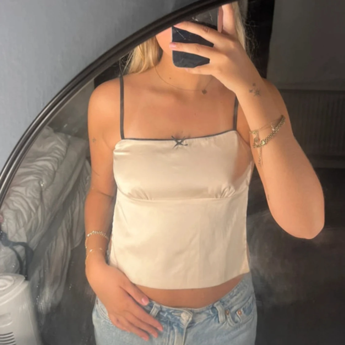 jättesnyggt satin linne med öppen rygg & rosett detalj💕endast använt en gång, nypris 675kr✨