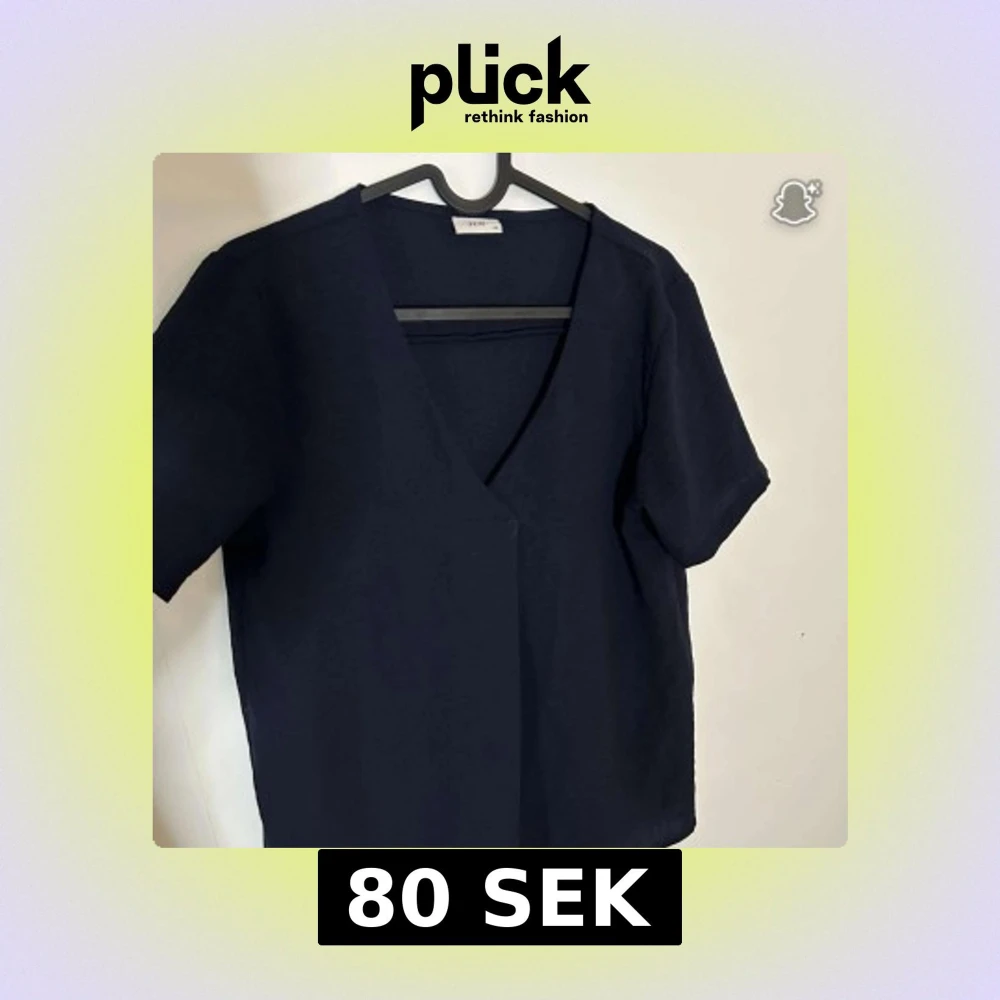 En stilren mörkblå topp från JDY i storlek XS. Toppen har korta ärmar och en djup v-ringning framtill. Enkel och clean design som är lätt att matcha med olika outfits. Perfekt för dig som gillar minimalistisk stil.