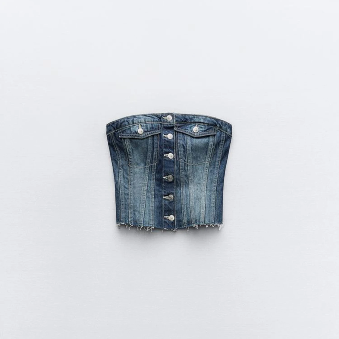 Säljer denna populära slutsålda jeanstoppen från Zara i storlek S. Superfint skick!❤️ Skriv om du har några frågor!
