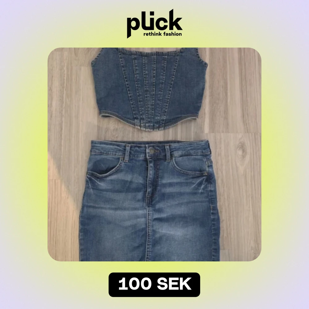 Snygg jeans korsett-topp med jeanskjol som ett set. Perfekt för en cool och trendig look. Passar bra till både vardag och fest!