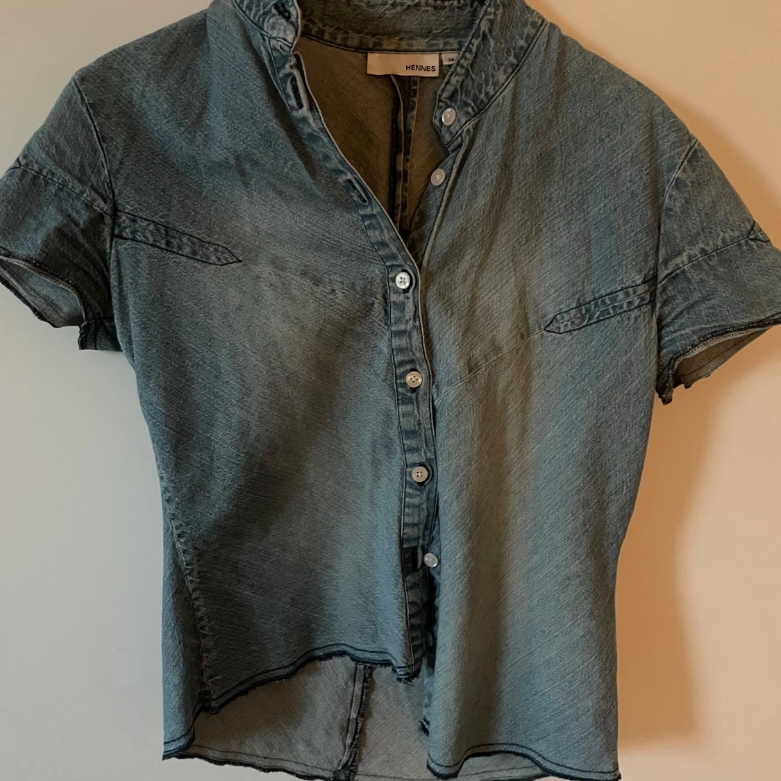 Kortärmade jeansskjorta från Hennes i ljusblå denim.