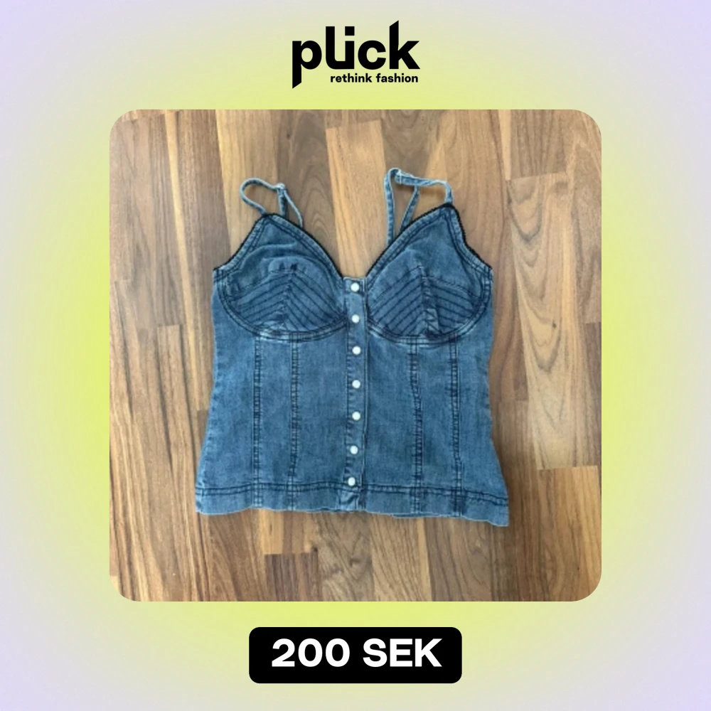 Fin topp av jeans med smocksöm baktill, reglerbara axelband.