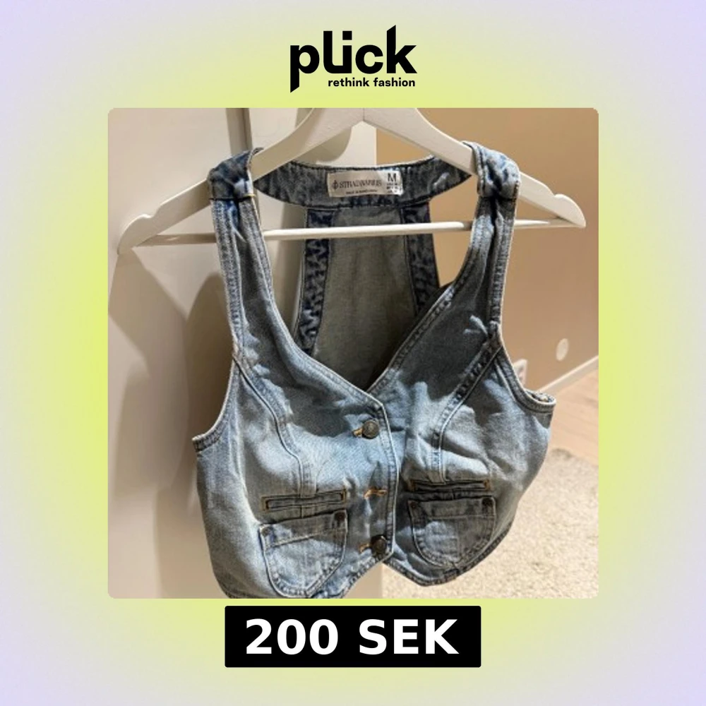 Snygg jeansväst från Stradivarius, strl m. Västen/toppen har knappar framtill och två fickor. Endast använd till halloween så mycket bra skick!!💫