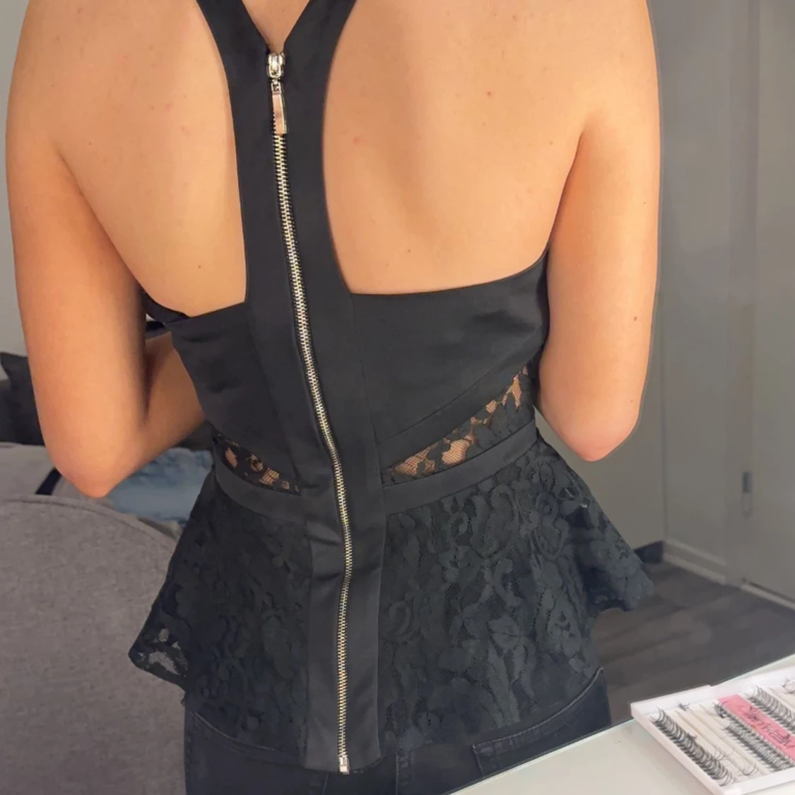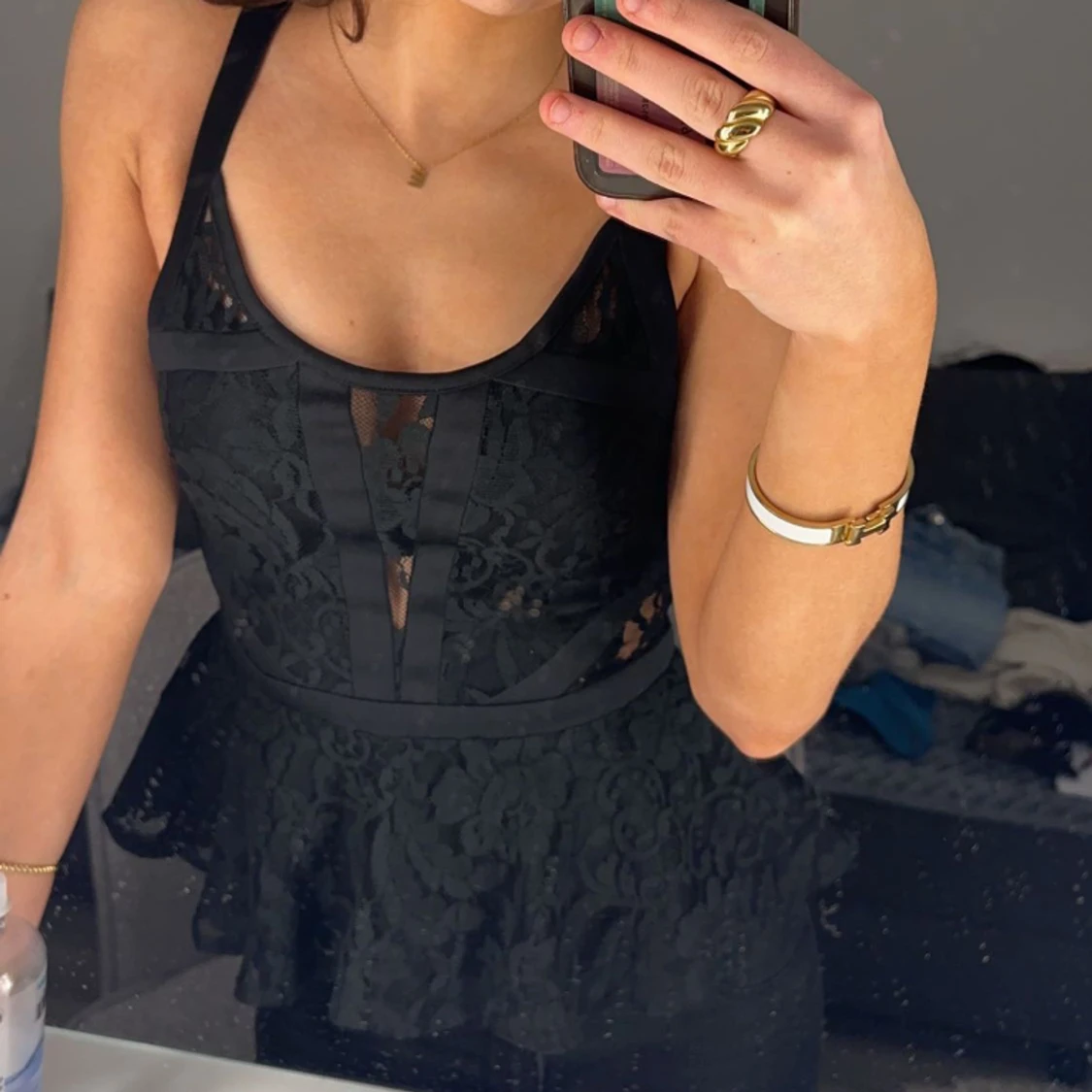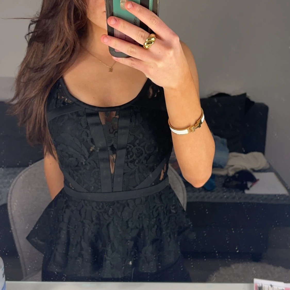 Spets topp, med volang ner till. Sjukt fin till festligare event. Super snygg passform. Endast testad !