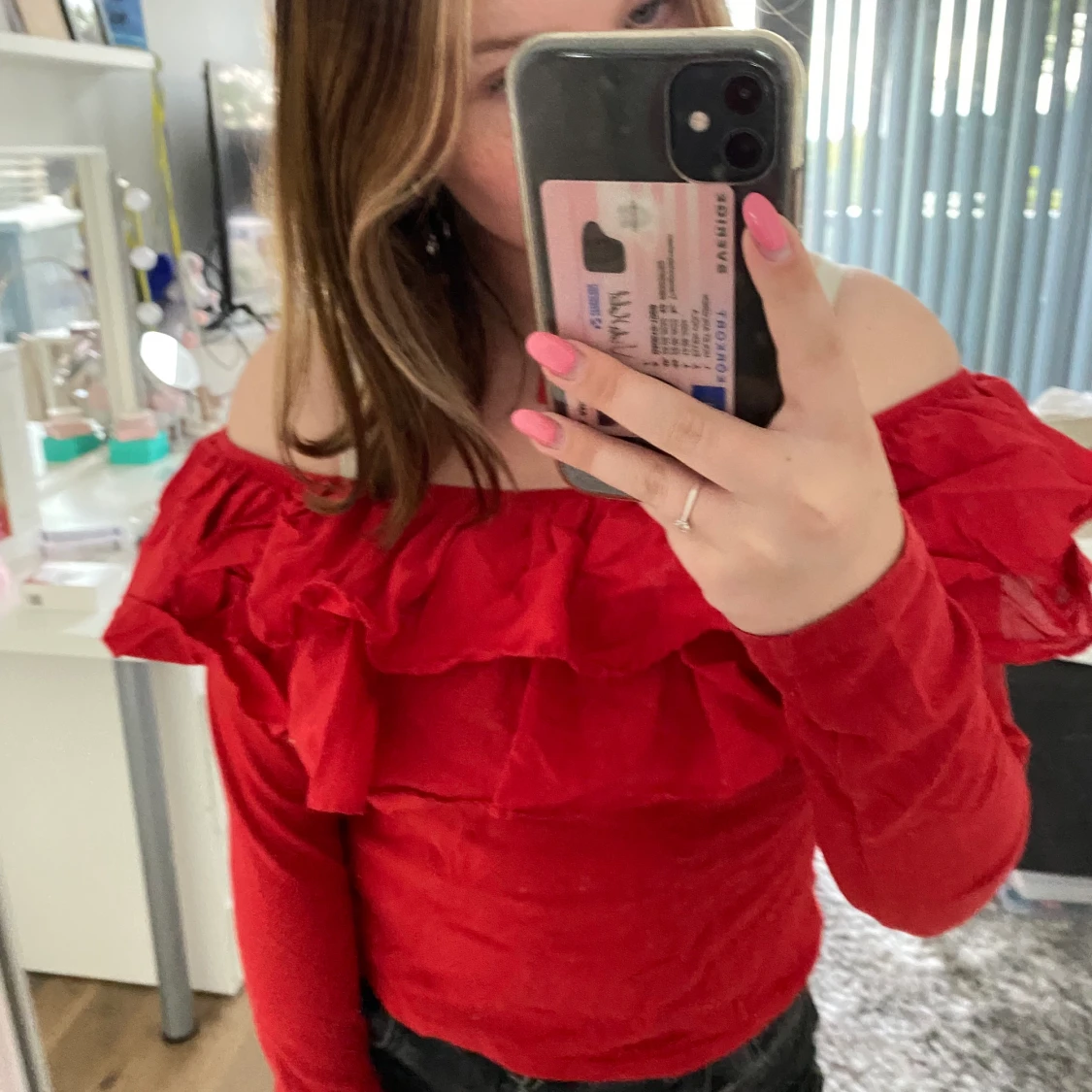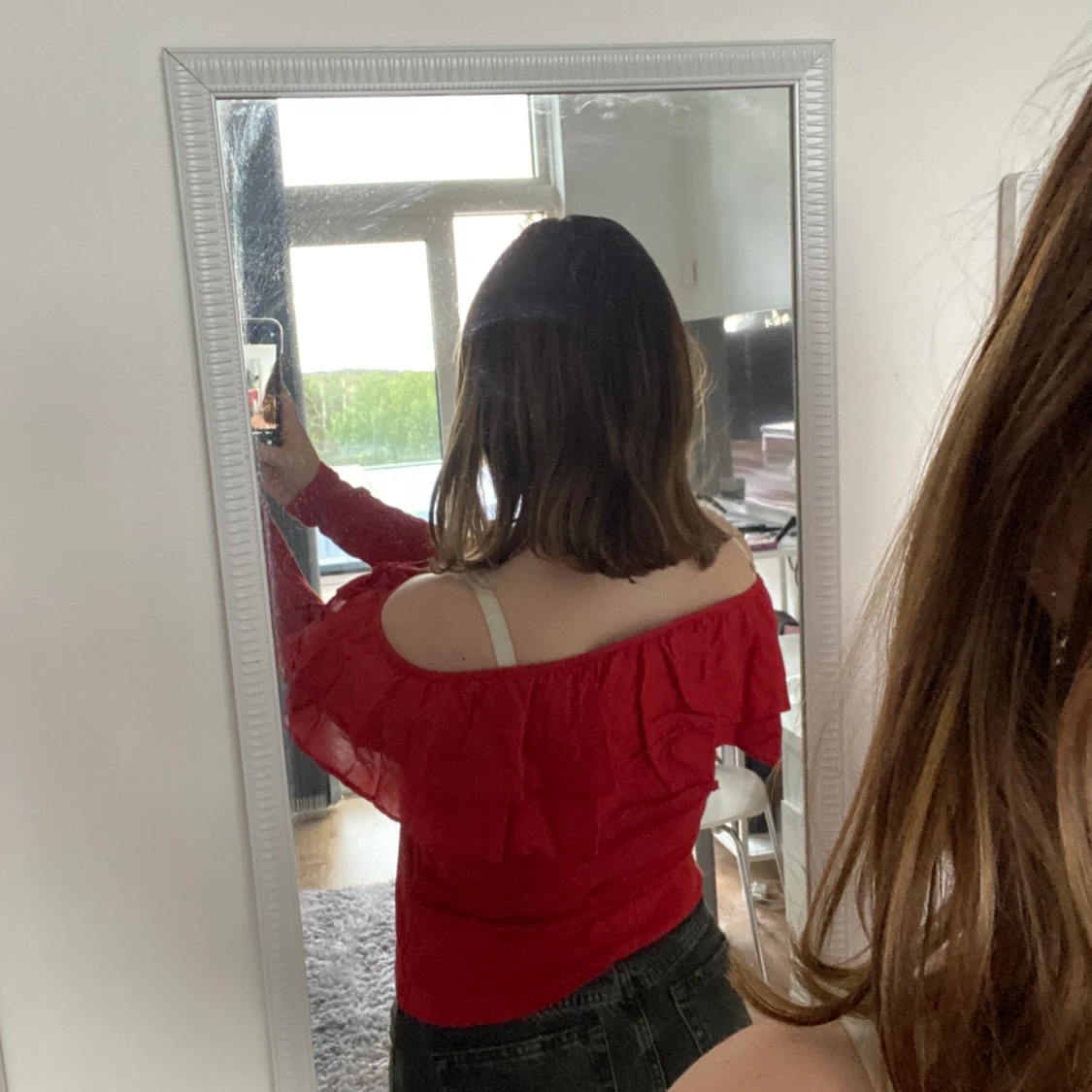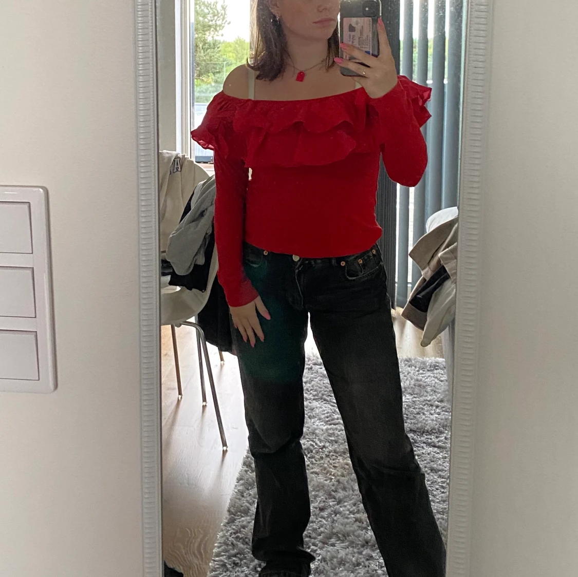 Denna köptes för länge sen på HM och har bara använts på en julafton typ. Superpassande väldigt bekväm tröja men väldigt fin volang! Har likadan i svart! Storlek M och sann till storlek