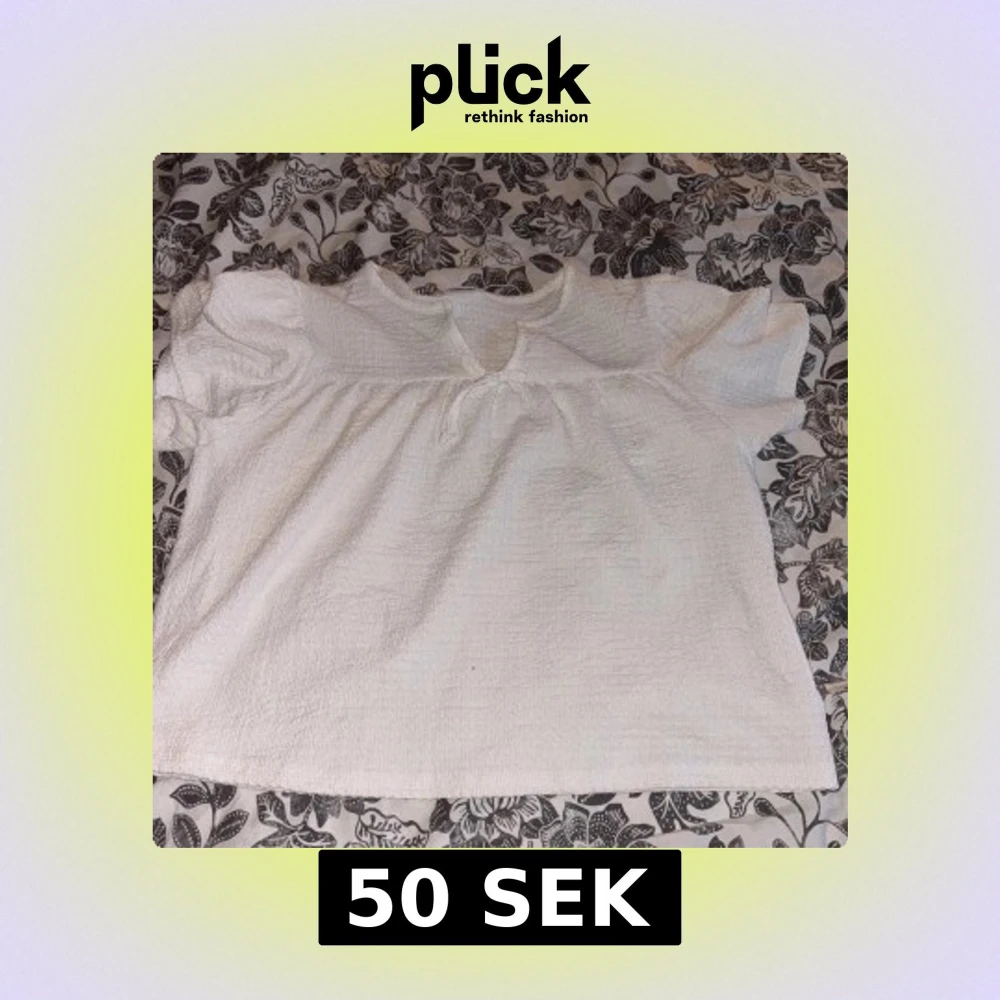 Säljer en söt vit blus med korta ärmar och lätt rynkad struktur. Blusen har en liten v-ringning framtill och är tillverkad i ett mjukt, krinklat tyg som ger en avslappnad känsla. Perfekt för dig som gillar en enkel men ändå stilren look.