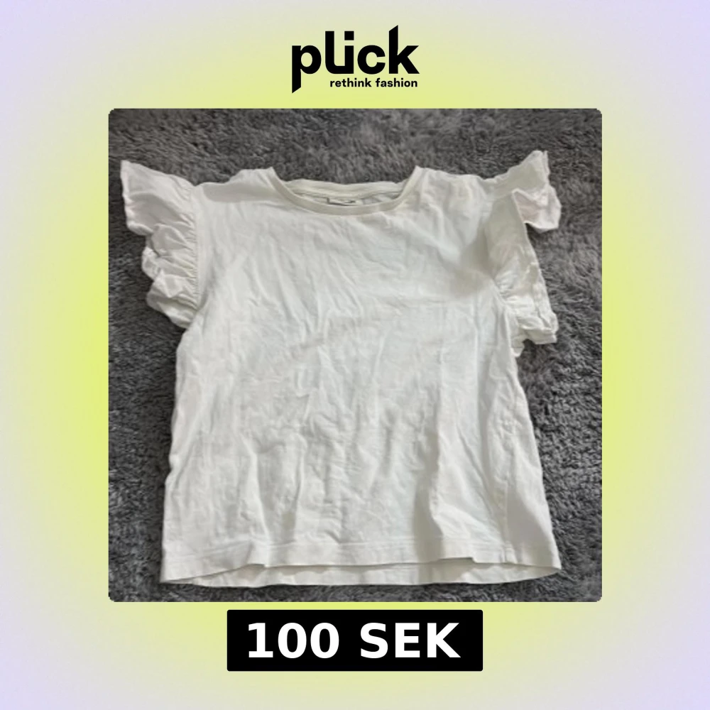 Supersöt vit topp från Kappahl i storlek 146/152. Toppen har korta ärmar med volangdetaljer som ger en extra touch. Tillverkad i mjuk bomull och passar perfekt till både jeans och kjol. Enkel och stilren design som funkar till många outfits.