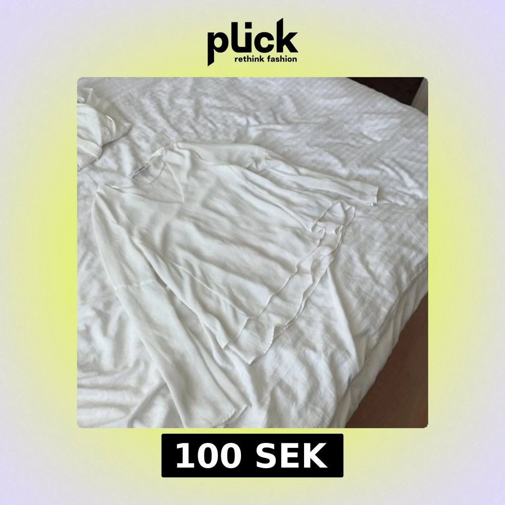 Säljer en stilren vit blus från KappAhl i storlek 34. Blusen har v-ringning, långa ärmar och dubbla lager tyg som ger en flowy känsla. Perfekt för dig som gillar en clean och fräsch look. Materialet känns lätt och luftigt.
