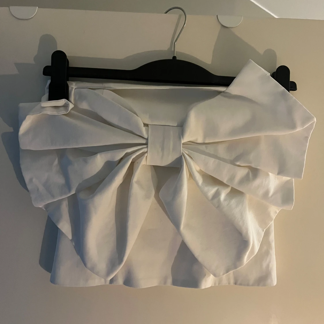 Supersöt vit tubtopp från Kappahl med en stor rosett framtill. Toppen är axelbandslös/bandau och är aldrig använd🤍