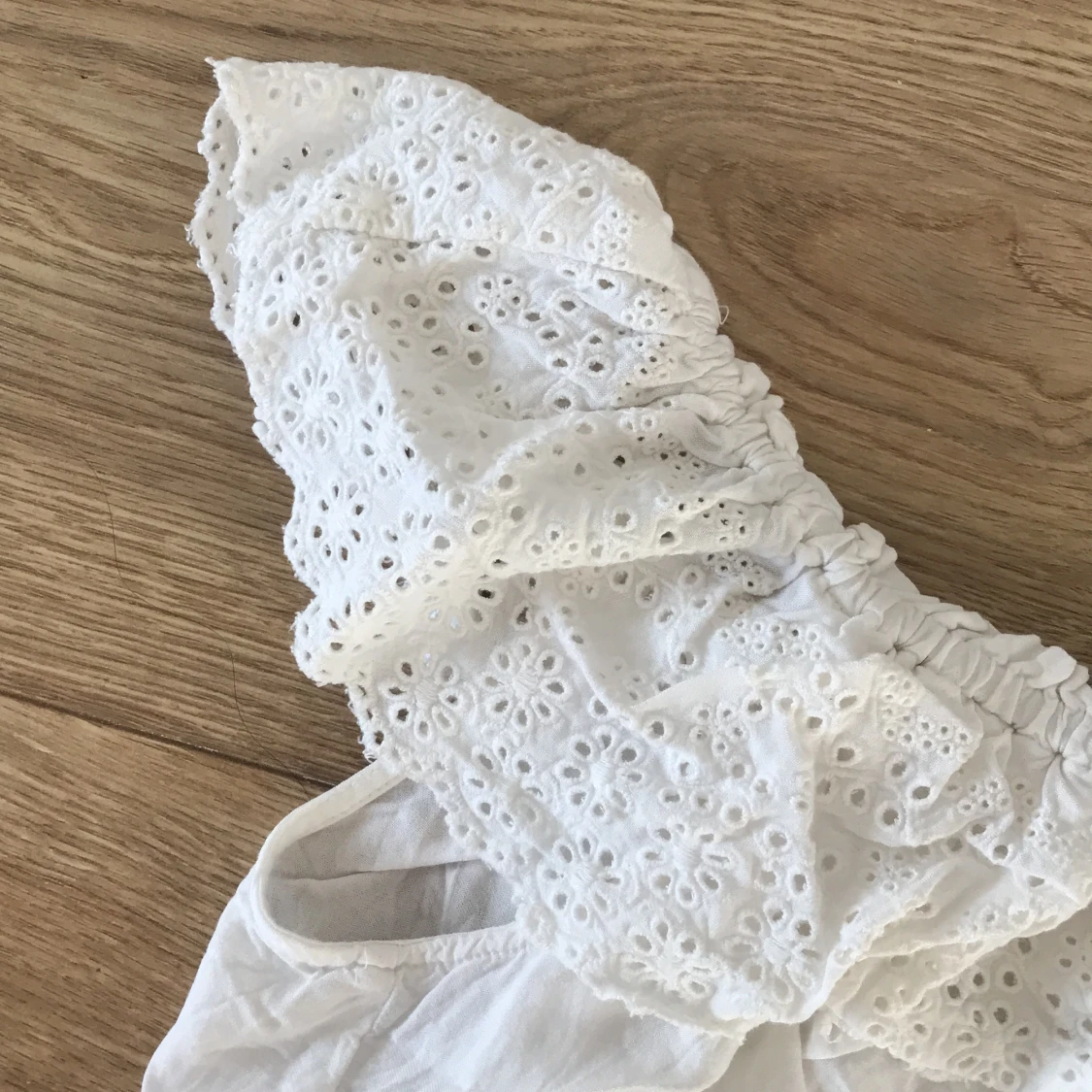 Säljer en söt vit offshoulder topp med vackra spetsdetaljer. Toppen har en elastisk kant vid midjan och är perfekt för sommardagar. Den är i bra skick och passar både till vardags och festliga tillfällen. Perfekt för att känna sig extra fin! 🌸