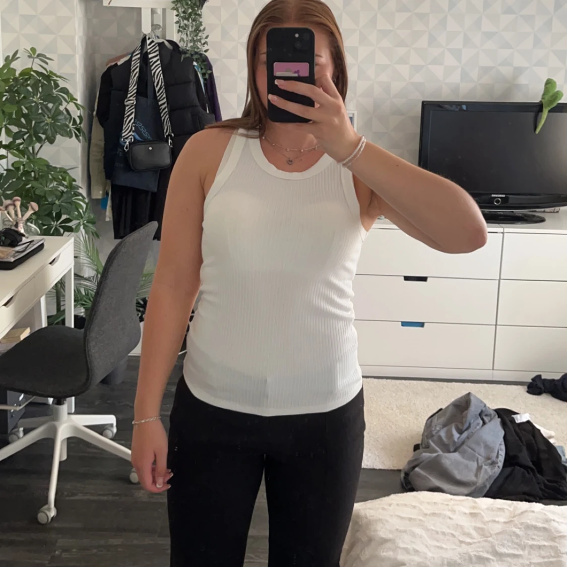 Vitt linne från Kappahl i storlek M. Säljer pga av att jag inte använder den längre, lite längre i modellen.