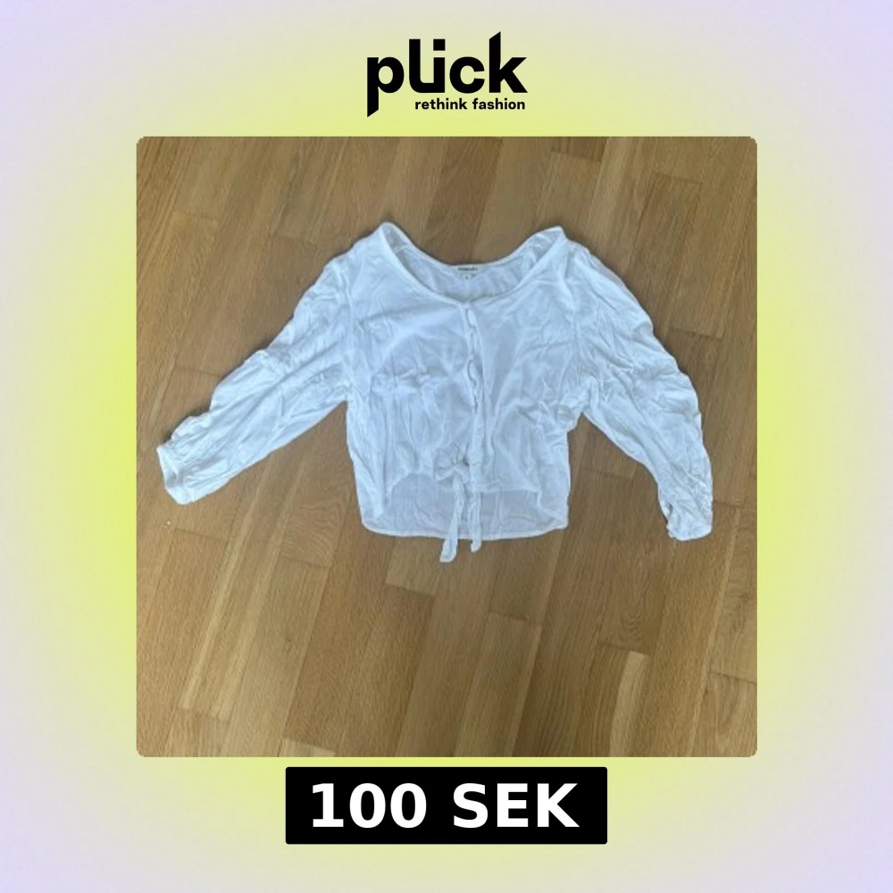 Supersöt vit blus från Kappahl i storlek S. Modellen är croppad med långa ärmar, knyt framtill och klädda knappar. Tunt och lätt material, perfekt för en chill look.