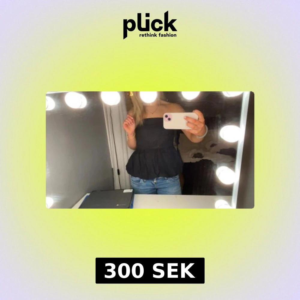 Säljer en svart tubtopp med volang nedtill. Toppen är axelbandslös och har en bandeauform som sitter snyggt över bysten. Perfekt att styla med jeans eller kjol💓💓💓❣️❣️