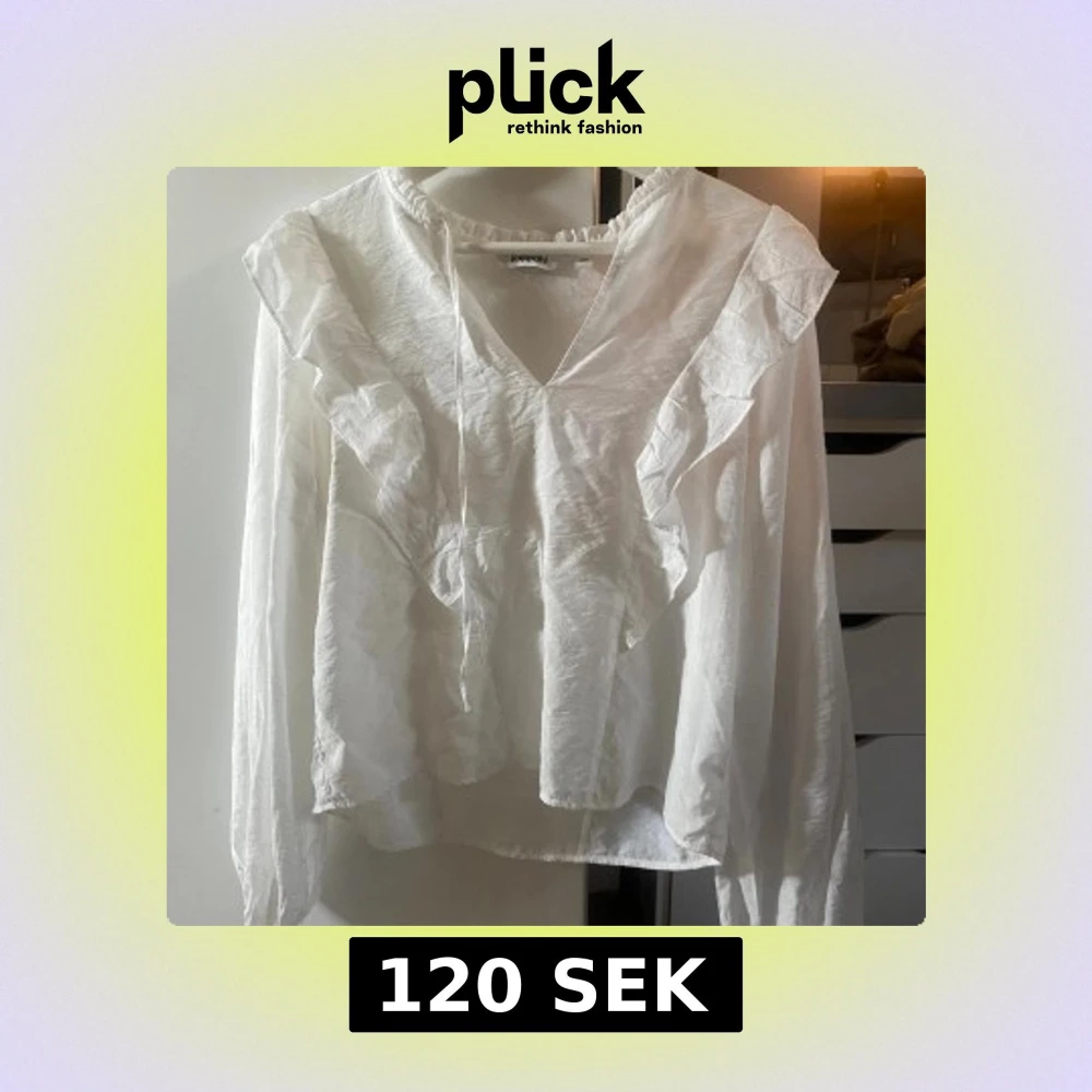 Supersöt vit blus från Kappahl med volangdetaljer längs axlarna och v-ringning med knytband. Knappast använd med har en defekt på bild 3, men absolut inget man märker när den sitter på💗