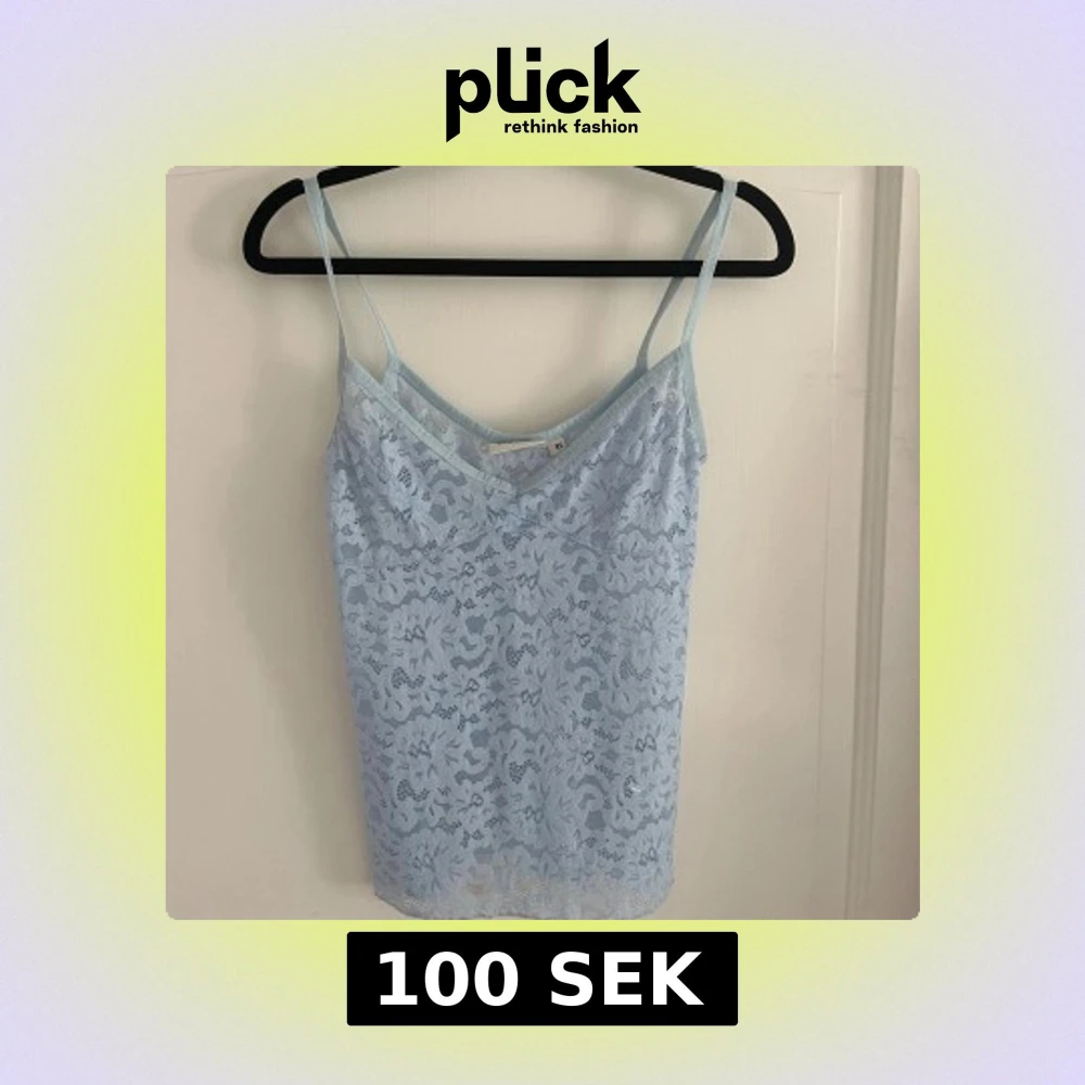Ljusblått linne i spets från Kappahl i storlek XS. Toppen har tunna axelband och är helt täckt av ett spetsmönster med blommiga detaljer.