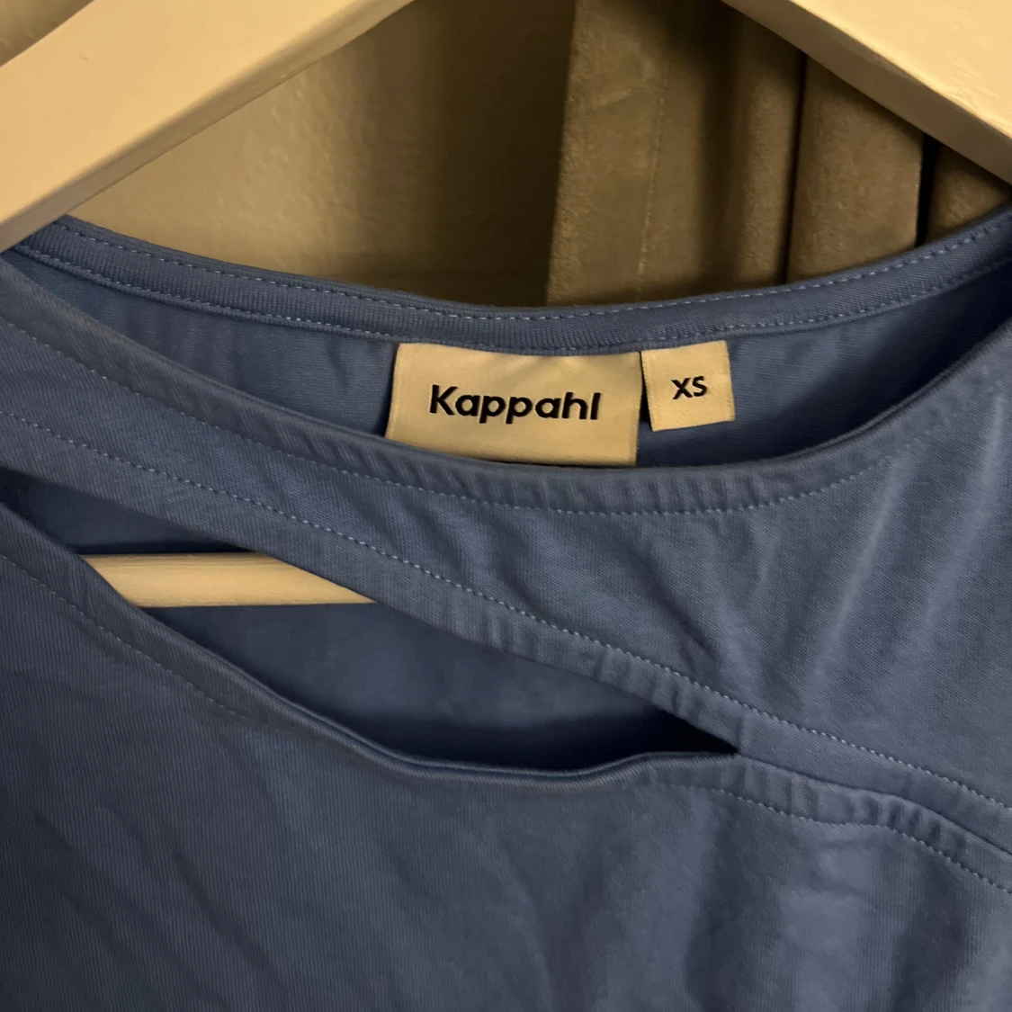 blå topp från Kappahl i storlek XS med cut-out detalj vid halsen💙 den passar även de som bär storlek S!