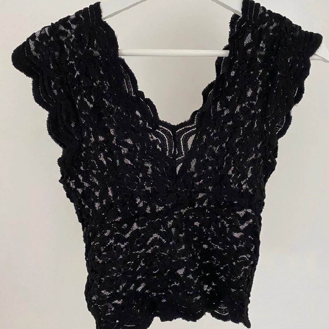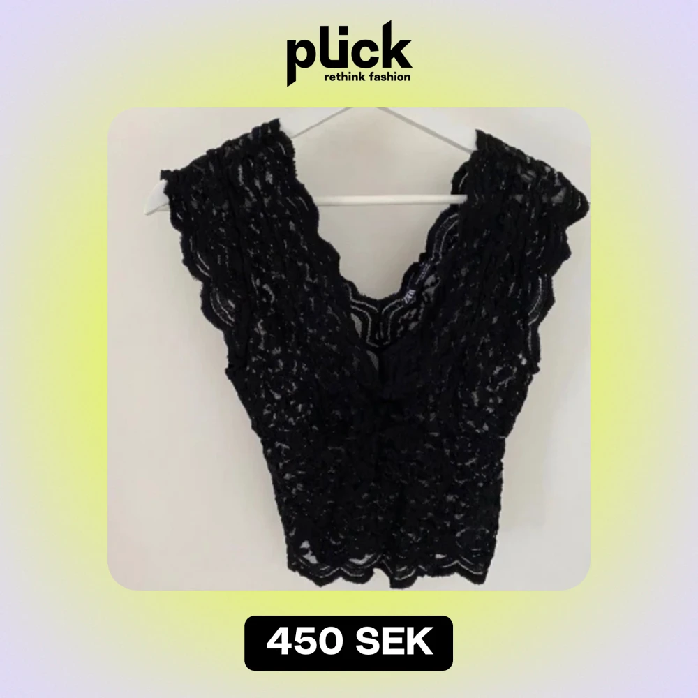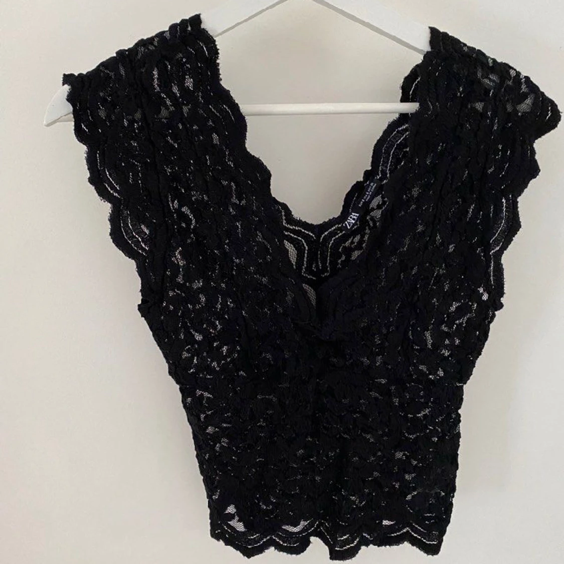 Svart topp från ZARA i spets (slutsåld), stl S men skulle säga att den passar M också då den är stretch i