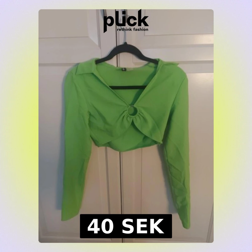 Trendig limegrön croppad topp med lång ärm och snygg ringdetalj framtill. Toppen har en djup v-ringning och är tillverkad i ett mjukt syntetmaterial. Perfekt för dig som vill sticka ut med en färgstark look.